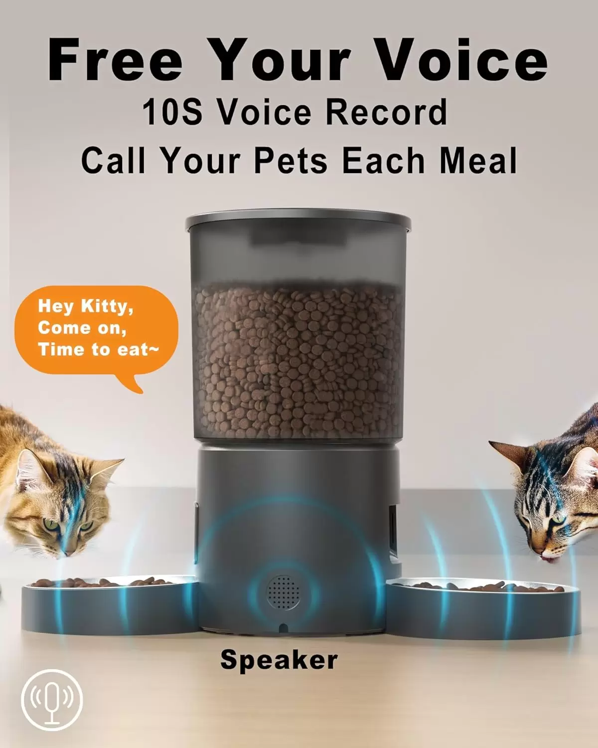 Comedero Automatico Doble para 2 Gatos 1.9 kg con Temporizador y Grabacion de Voz