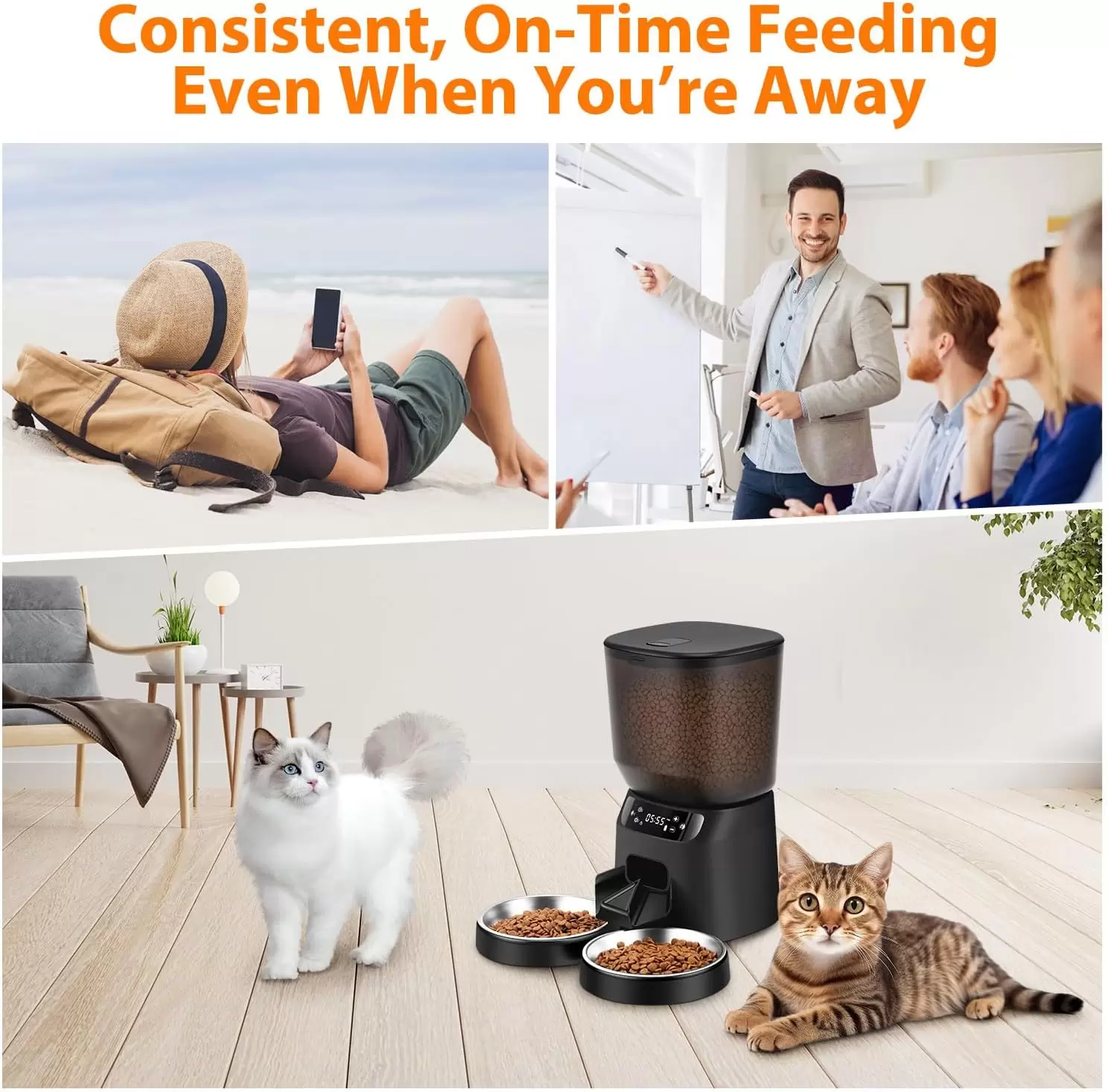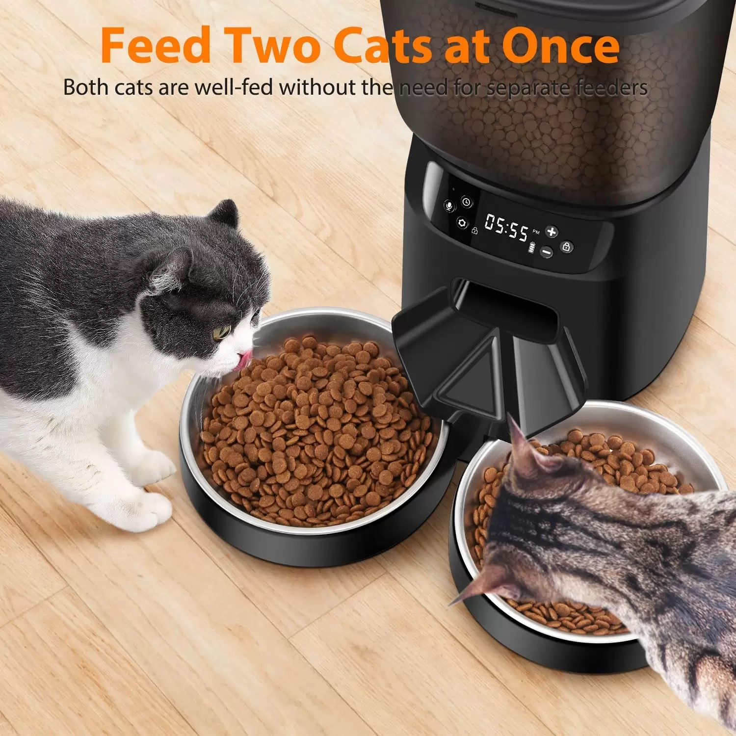 Comedero Automático para 2 Gatos (5 L) – Cuencos de Acero Inoxidable y Programable