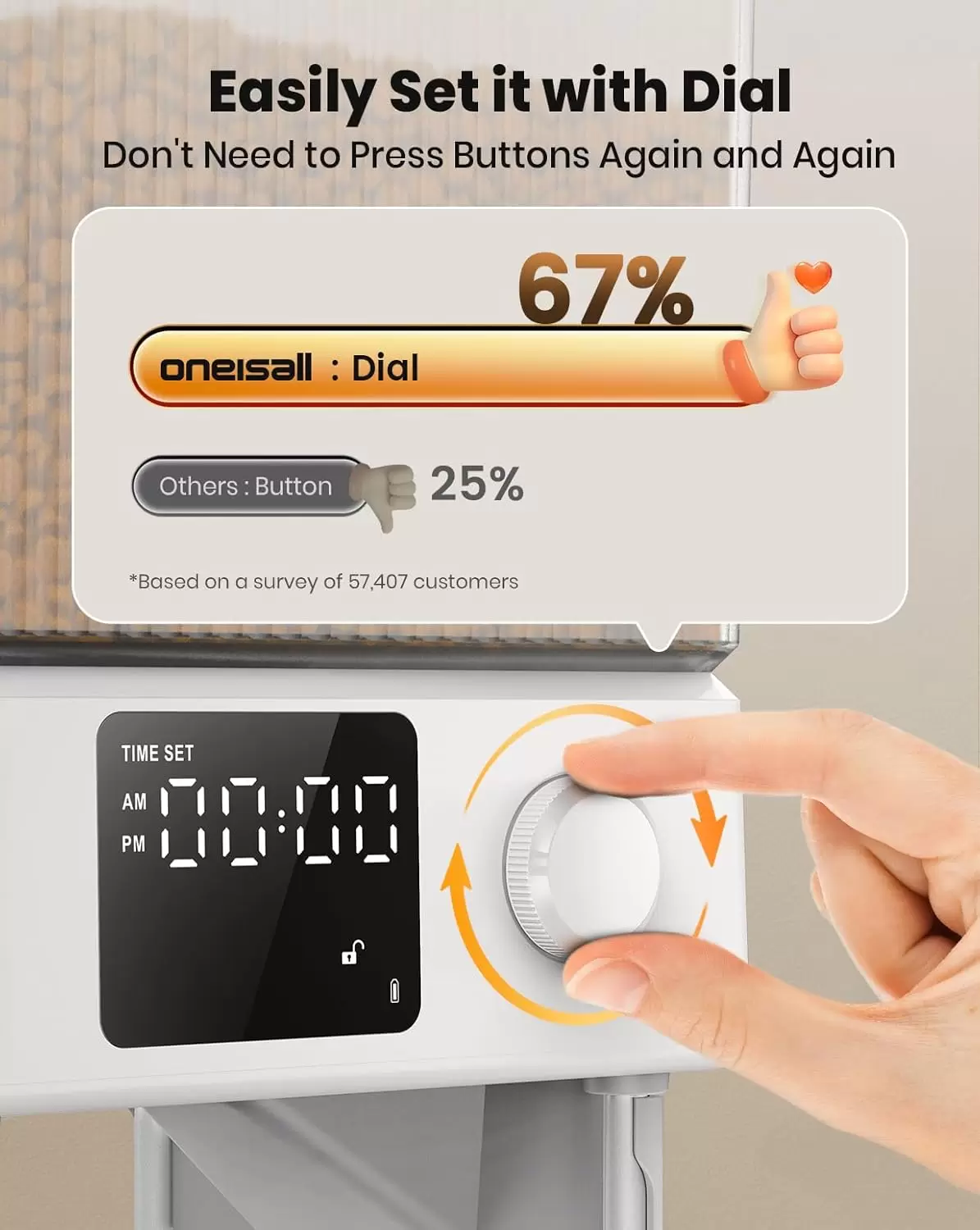 Fácil de instalar: el dispensador automático de comida para gatos oneisall tiene un dial para simplificar el programa. Todo el mundo puede configurarlo fácilmente y controlar la alimentación