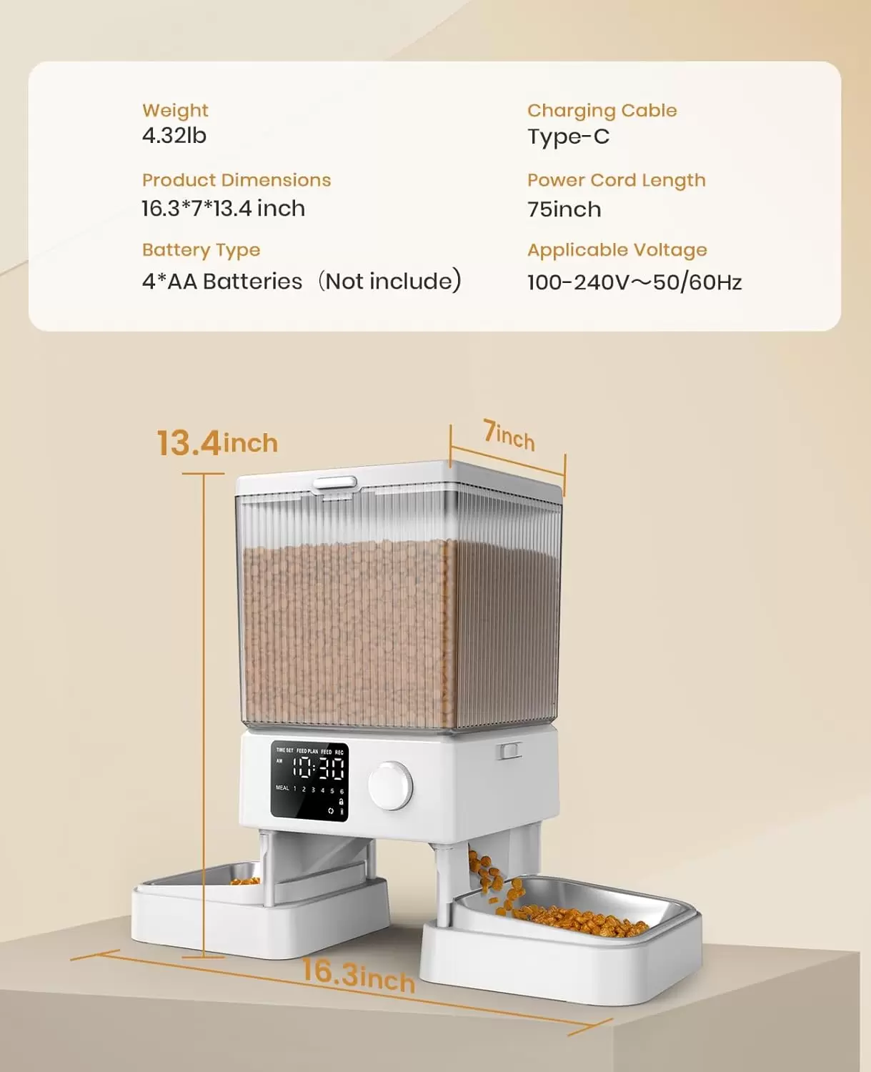 Grabadora de voz de 10 s: Puede grabar un mensaje de llamada de 10 s. El alimentador reproduciría el audio antes de cada comida