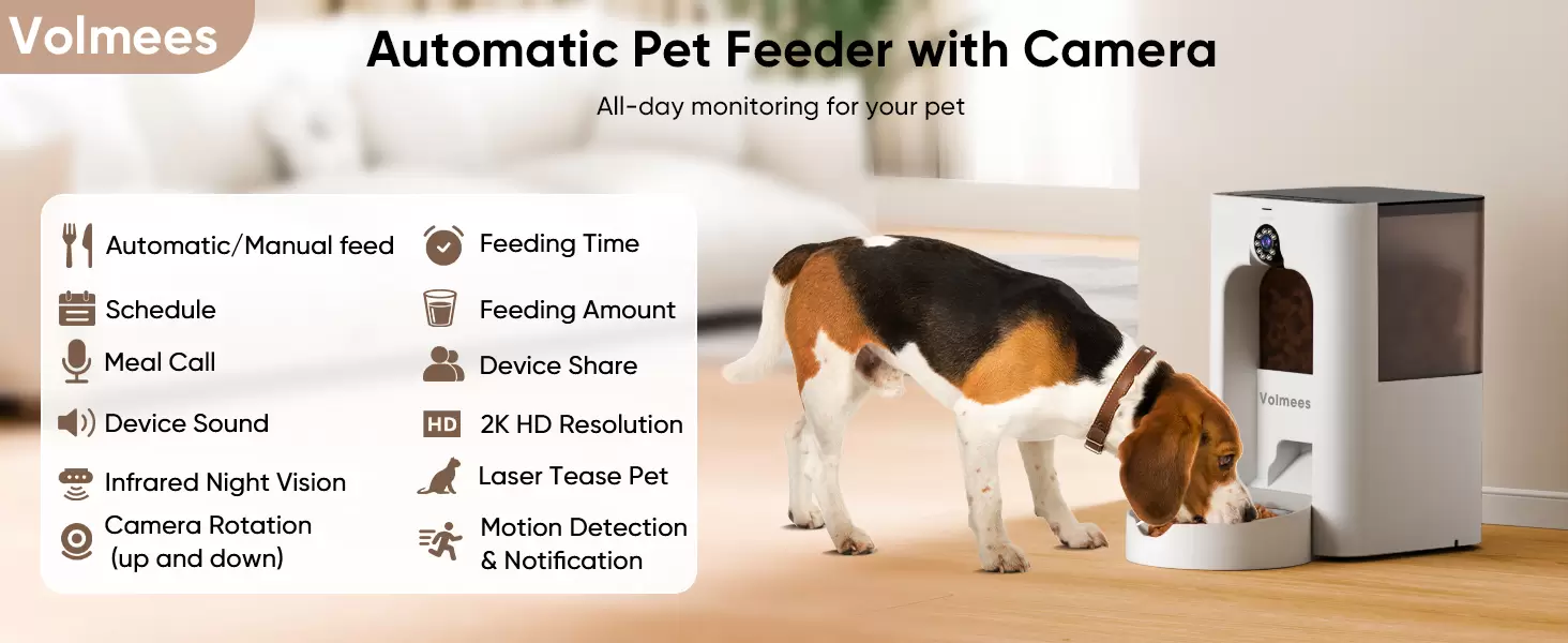 | Características especiales | Horario de alimentación, Audio bidireccional, Automático, Cámara giratoria (arriba y abajo), Laser Teasing Mascotas Función |