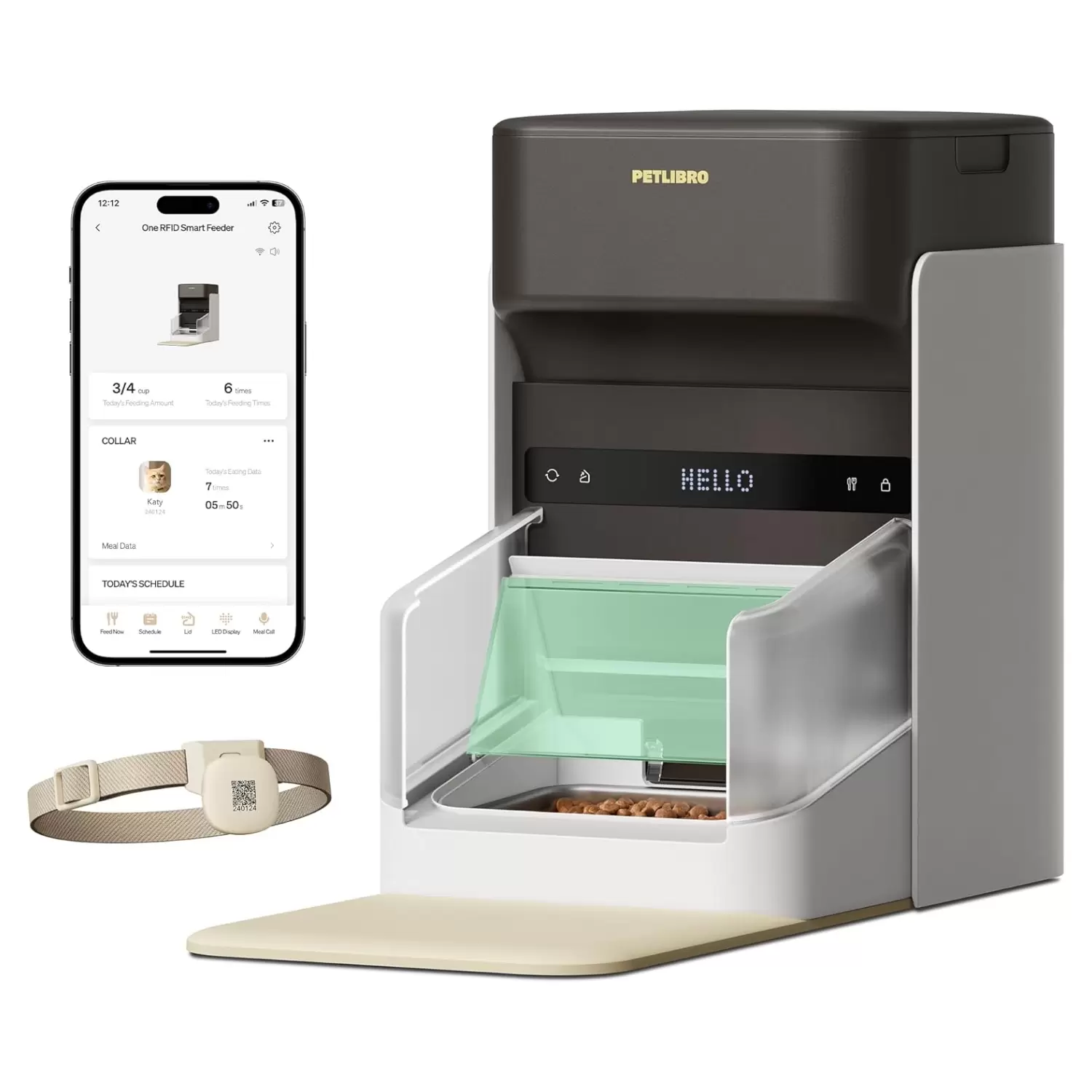 Un alimentador exclusivo para uno: con una etiqueta de cuello ligero mejorada, el comedero automático PETLIBRO One RFID para gatos garantiza que cada mascota en un hogar con múltiples mascotas tenga acceso a su propio comedero exclusivo. Ya sea que tus mascotas luchen con la agresión alimentaria o tengan requisitos dietéticos únicos que requieren alimentación separada, este alimentador está diseñado para abordar estas preocupaciones, asegurando que cada mascota reciba el cuidado y la atención individual que se merecen. (Solo es compatible con la etiqueta de cuello proporcionada)