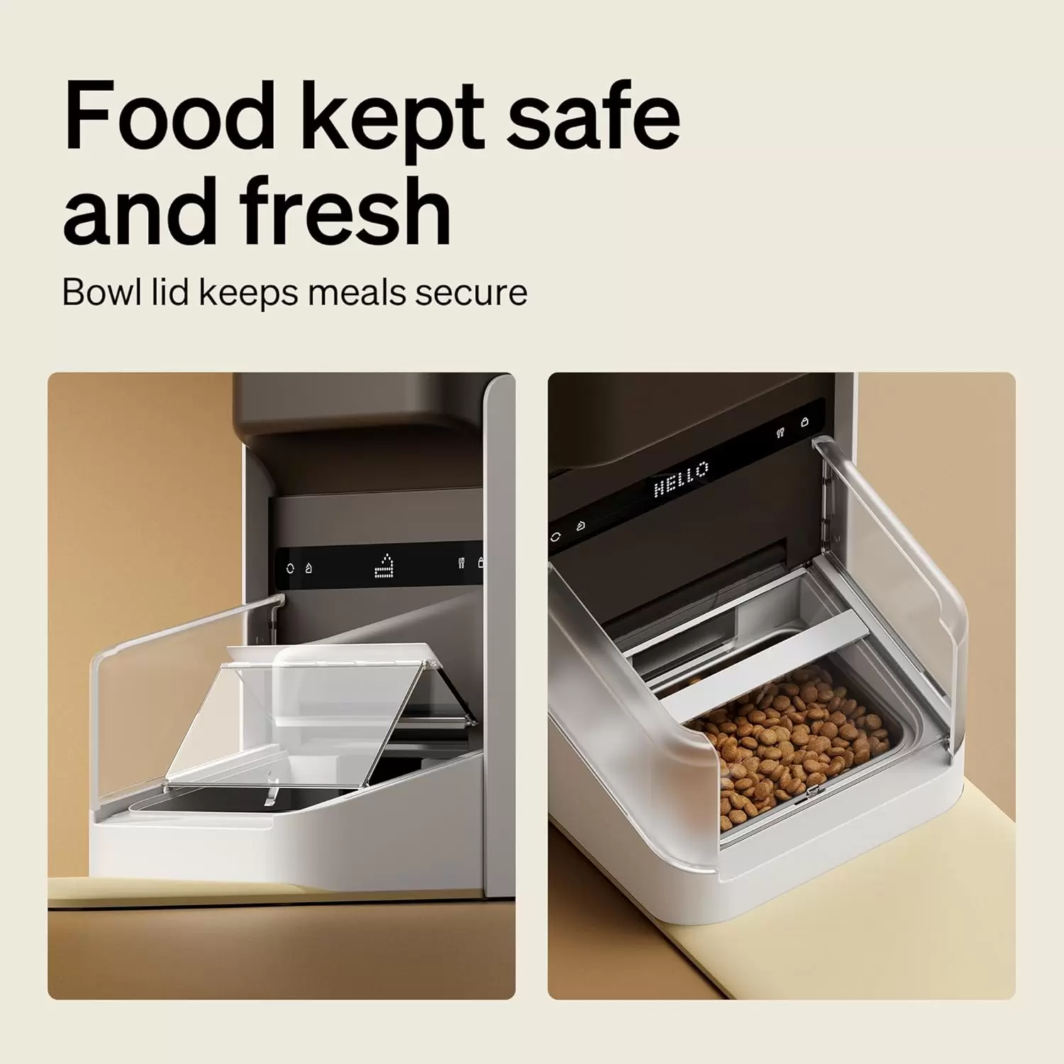 Cinco capas de frescura: la tapa sellada del comedero inteligente PETLIBRO para gatos, equipado con tiras de silicona en los bordes, aísla eficazmente el aire de la entrada al tanque de alimentos. Cuando se usa con la bolsa desecante proporcionada, las croquetas en el tanque de alimentos están bien protegidas. Además, el rotor sellado permanece bien cerrado cuando no se dispensan alimentos, trabajando junto con la tapa para garantizar que su mascota disfrute de la comida más fresca posible.