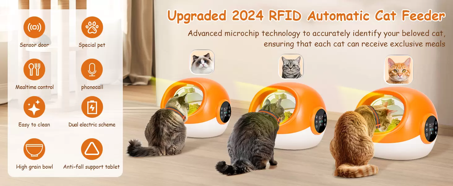 Comedero para gatos con sensor de cuello: ¿Estás cansado de peleas de comida entre tus amigos peludos o preocuparte por las necesidades dietéticas de tus mascotas cuando no estás cerca? Saluda al revolucionario alimentador para gatos Microchip: la manera inteligente y fácil de alimentar a tus mascotas. El Reconocimiento de Microchip garantiza que solo su mascota designada que use la etiqueta del collar pueda acceder a su comida. Ideal para hogares con múltiples mascotas para evitar el robo de alimentos y manejar diferentes necesidades dietéticas.