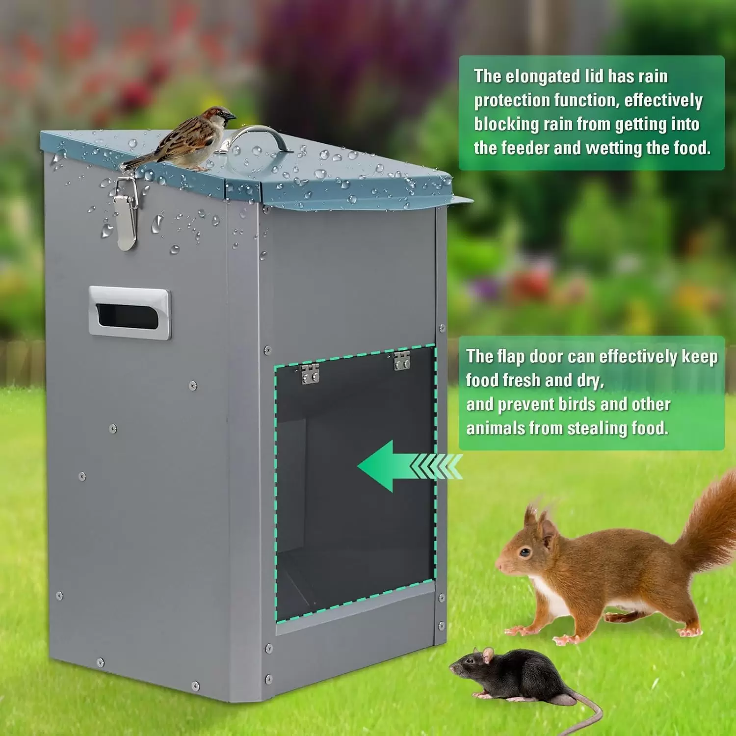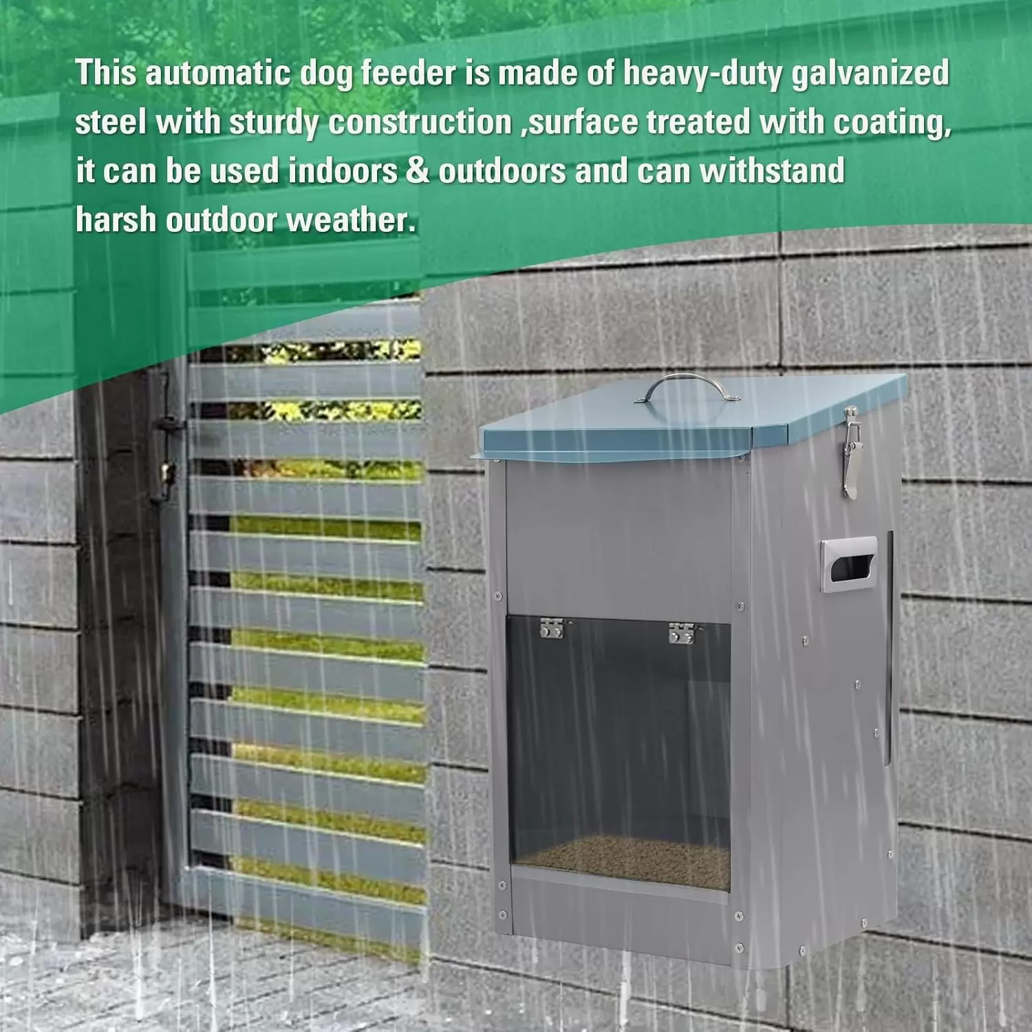 Material fuerte y duradero: este comedero automático para perros está hecho de acero galvanizado resistente con construcción resistente, superficie tratada con revestimiento, se puede utilizar en interiores y exteriores y puede soportar las duras condiciones climáticas al aire libre.