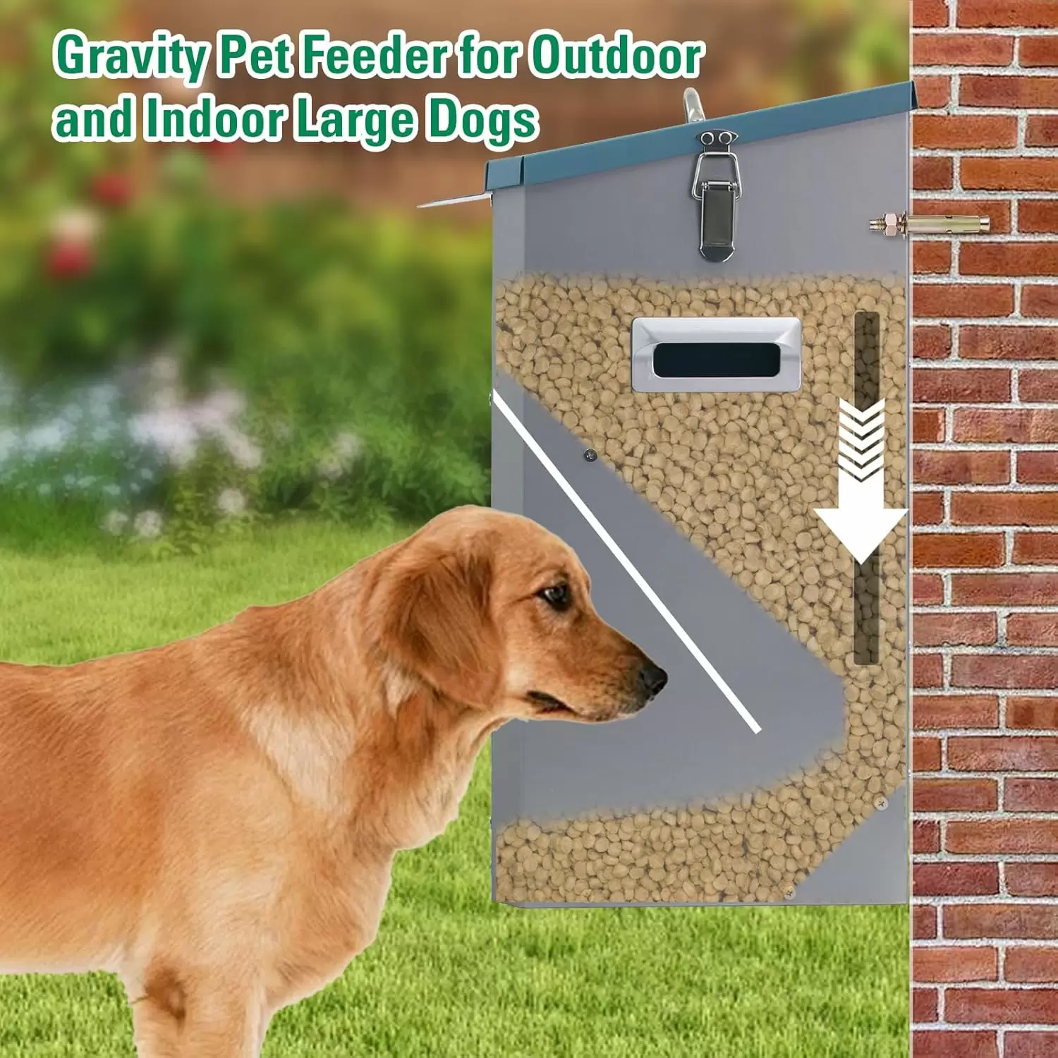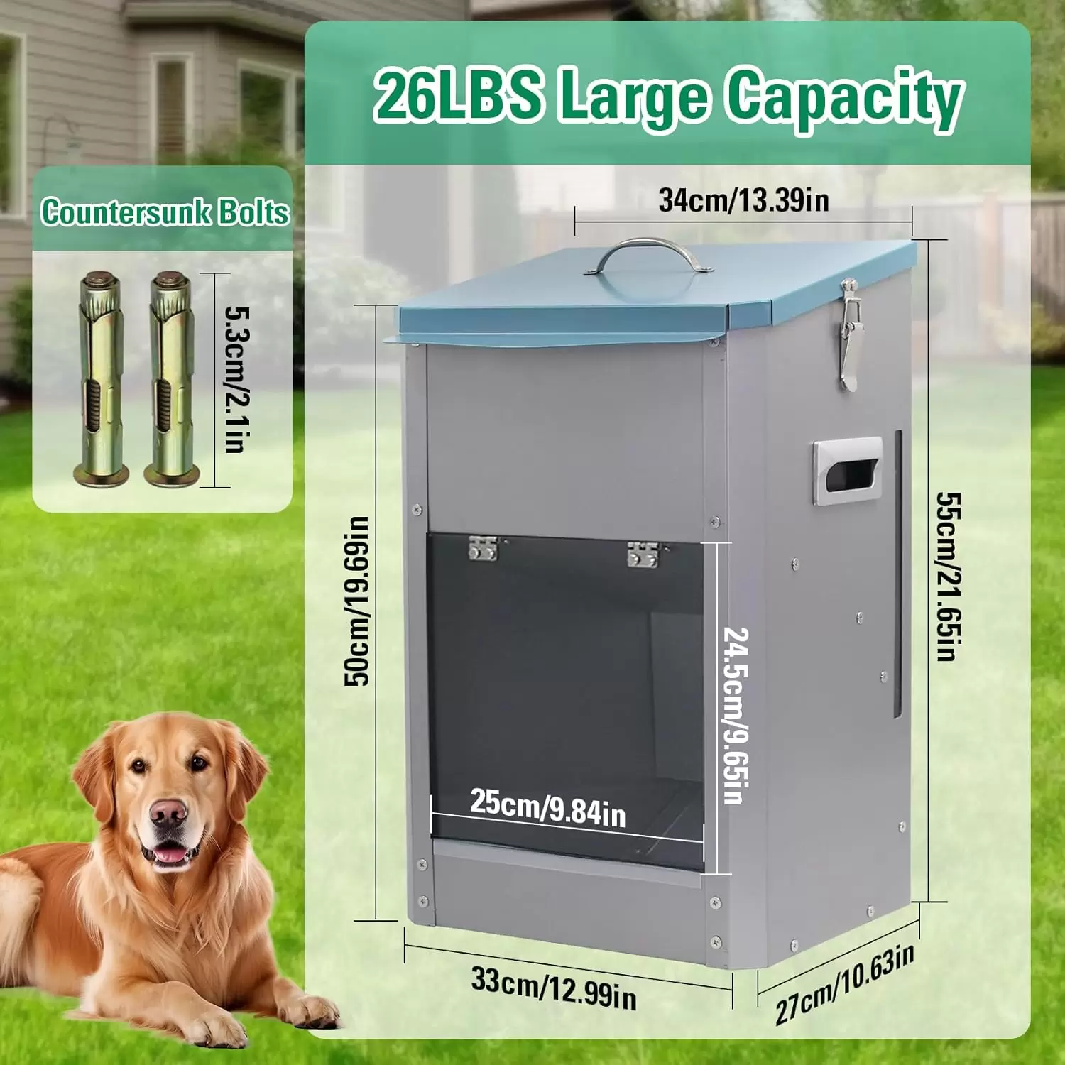 Gran capacidad de 26 libras: este comedero para perros al aire libre tiene capacidad para aproximadamente 25 libras de comida para perros, es capaz de alimentar a varios perros grandes, sin necesidad de reponer la alimentación con frecuencia, ahorra tiempo, perfecto para la ocupada familia de varios perros. Hay 1 ventana de visualización transparente en el lateral del comedero, que es conveniente para que el propietario observe la cantidad restante de comida para perros en el interior para una reposición oportuna, muy conveniente.