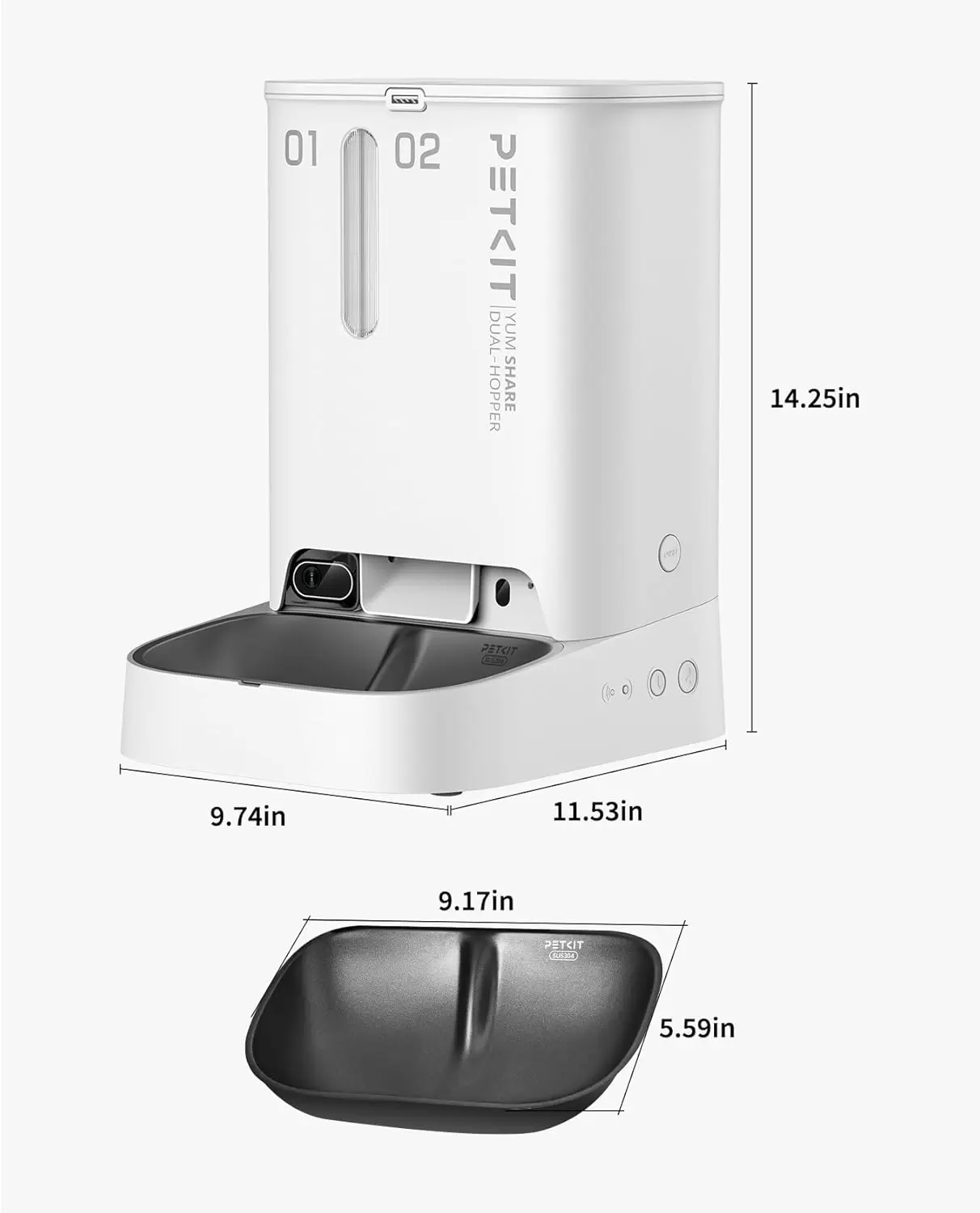 | Componentes incluidos | Tolva doble, cuenco de alimentación de acero inoxidable 304, sistema de bloqueo fresco cuádruple, revestimiento antiadherente, cable WiFi, 4 pilas alcalinas de celda D (no incluidas) |