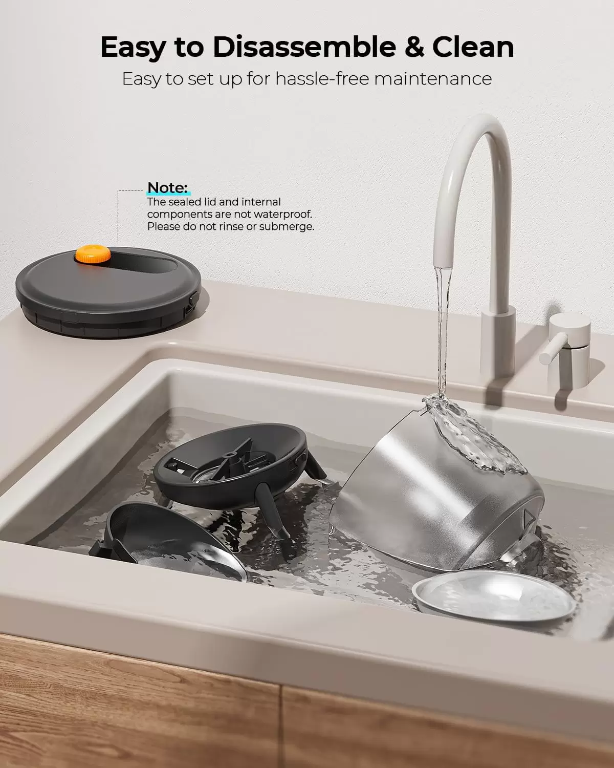 Diseño integrado de higiene y antiinsectos: este comedero automático para gatos cuenta con una tapa superior sellada y una estructura interna antiinsectos que ayuda a mantener los alimentos secos frescos y seguros. Todas las piezas, excepto la tapa, son fácilmente extraíbles para una limpieza a fondo, asegurando un ambiente de alimentación limpio y saludable para tus mascotas.