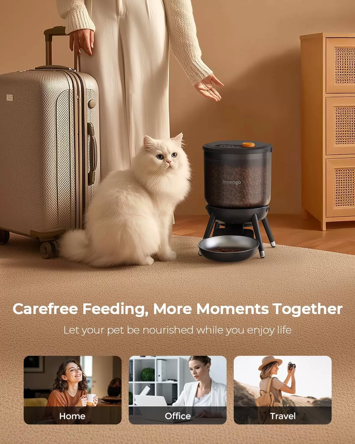 Capacidad de alimentos de 3 L (≈12.6 tazas) con tolva transparente: este dispensador de comida para gatos tiene suficiente comida seca para alimentar a tu mascota durante varios días. Controla fácilmente los niveles de alimentos con la tolva transparente, perfecta para horarios ocupados o viajes cortos.