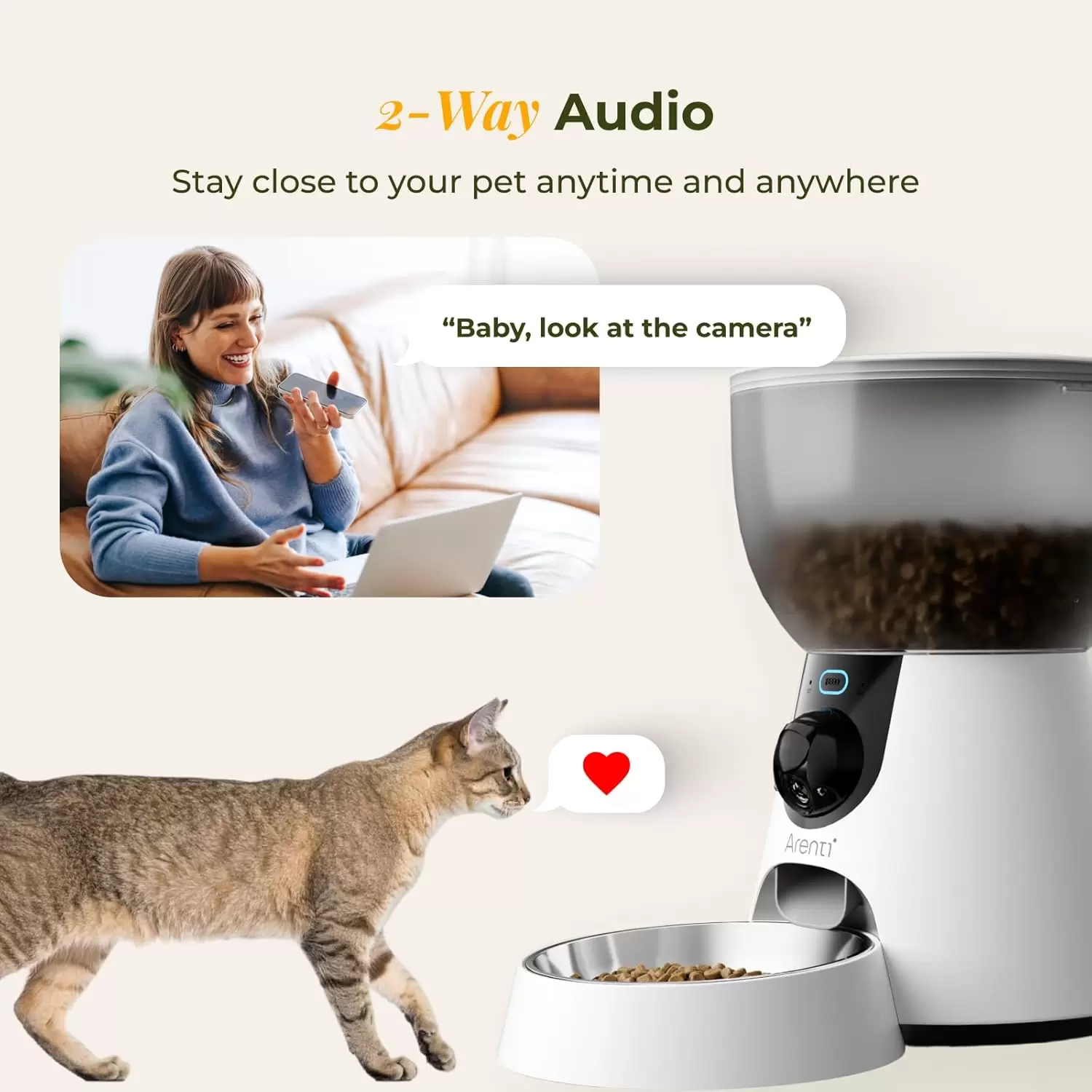 Interacción en tiempo real: Audio bidireccional para hablar con su mascota y escuchar sus respuestas desde cualquier lugar.
