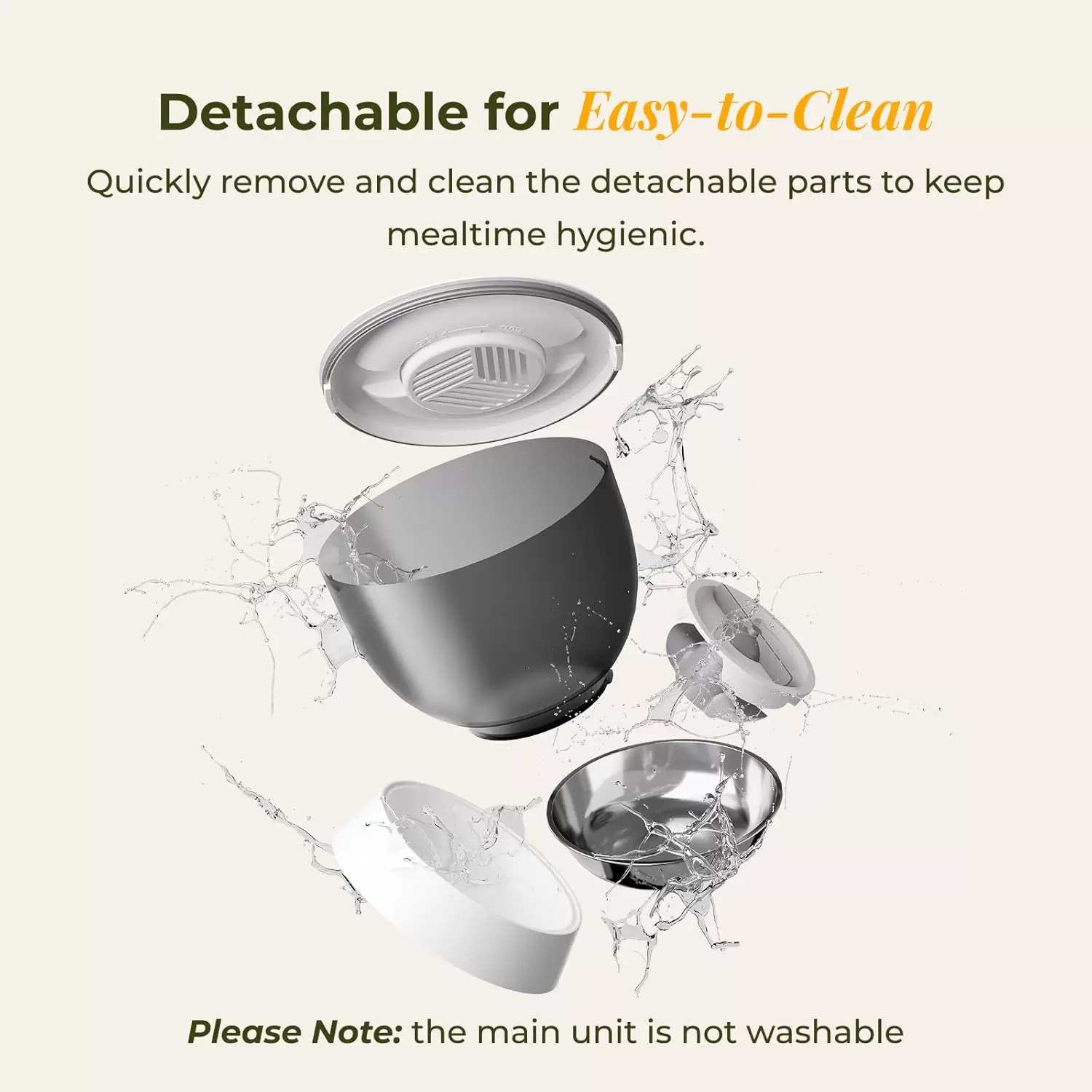 Materiales premium: Plato de acero inoxidable extraíble y contenedor sellado para mantener la frescura del alimento.