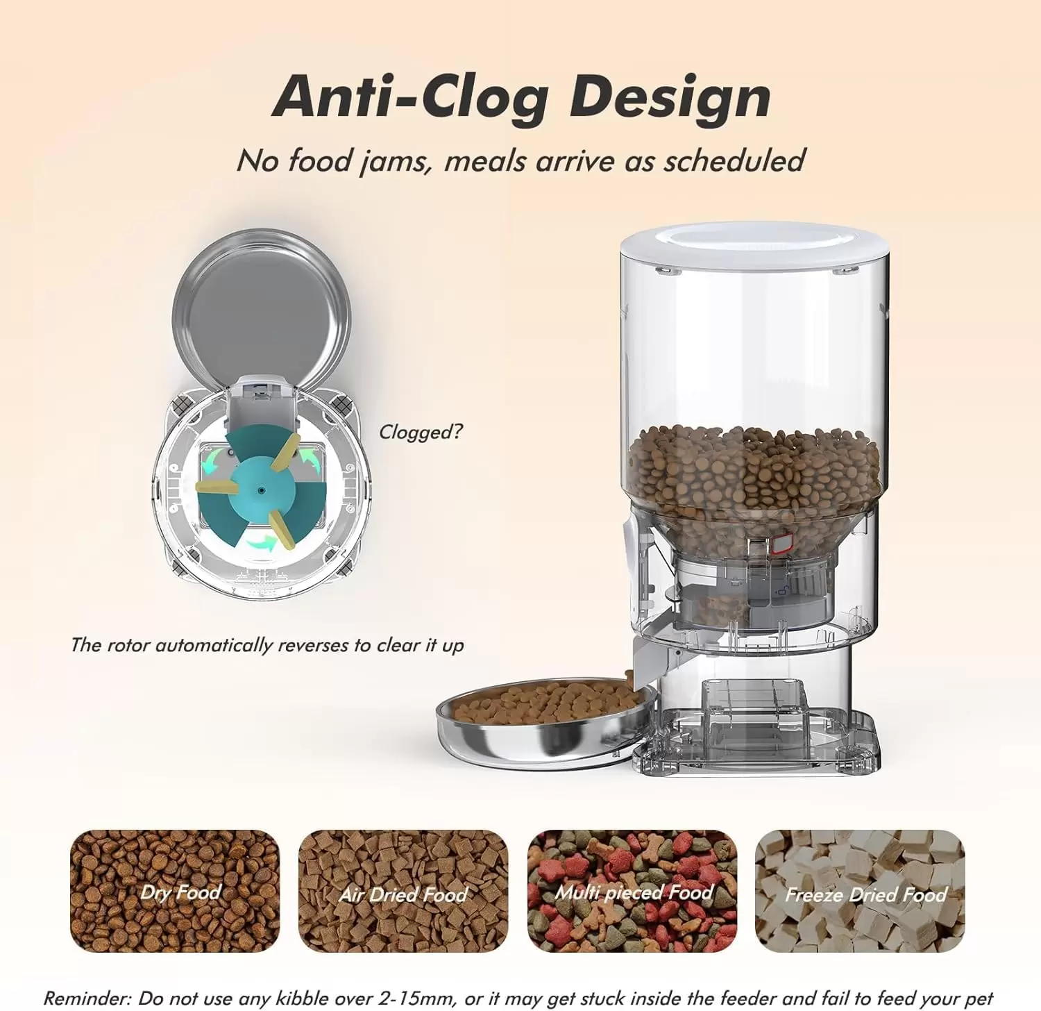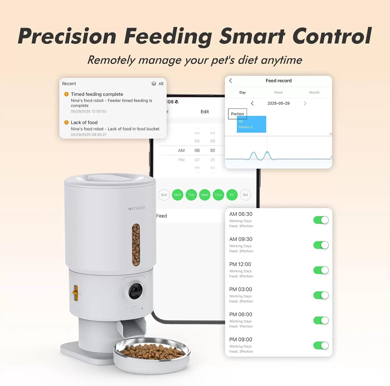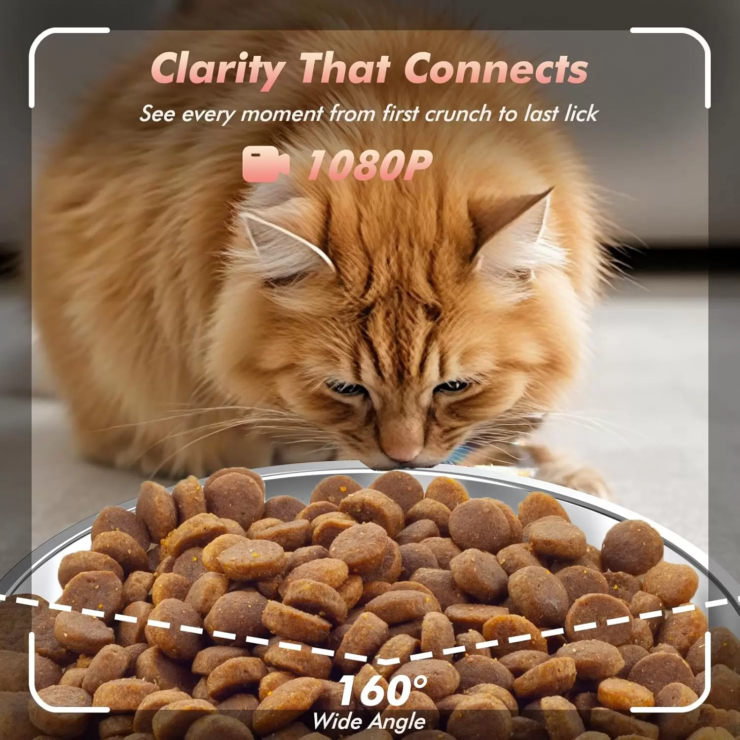 Comedero de 2.3 kg con WiFi 5G y camara 1080P. Programable por app, incluye audio bidireccional, sellado de frescura y plato de acero inoxidable para el cuidado inteligente de tu mascota.