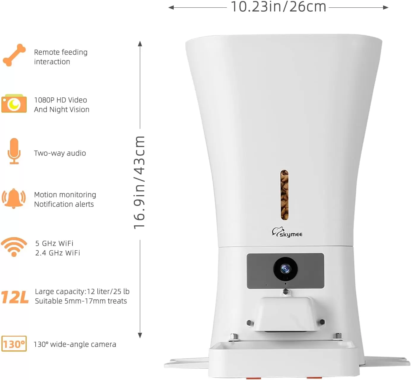 Comedero Automatico WiFi 5G con Camara HD 1080P de 5 kg Programable para Mascotas