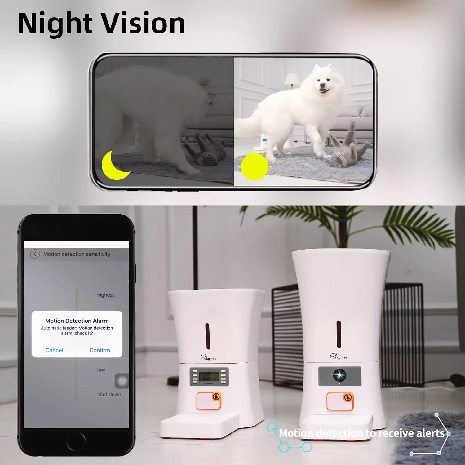 Tecnología 5G para una conexión sin fallas A diferencia de otros modelos, este comedero es compatible con las redes WiFi 5G de los routers modernos, asegurando una transmisión de video fluida y una respuesta inmediata de la aplicación móvil. El sistema de audio de alta calidad te permite calmar la ansiedad de tu mascota con tu propia voz. Además, el equipo cuenta con sensores de movimiento que te alertan de cualquier actividad inusual, funcionando como un sistema de seguridad adicional para tu hogar.