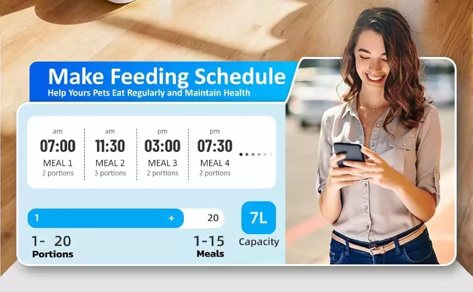 Tranquilidad total en sus vacaciones y rutinas diarias Este comedero inteligente es la solucion definitiva para los dueños de mascotas en Chile que buscan independencia sin sacrificar el cuidado. Gracias a su gran capacidad de 3.2 kg, puede alimentar a sus gatos o perros pequeños durante semanas. A traves de la aplicacion movil compatible con WiFi 5G, usted podra monitorear la dieta de su mascota en tiempo real con una imagen nitida de 1080P, sin importar si esta en la oficina o fuera de la ciudad.