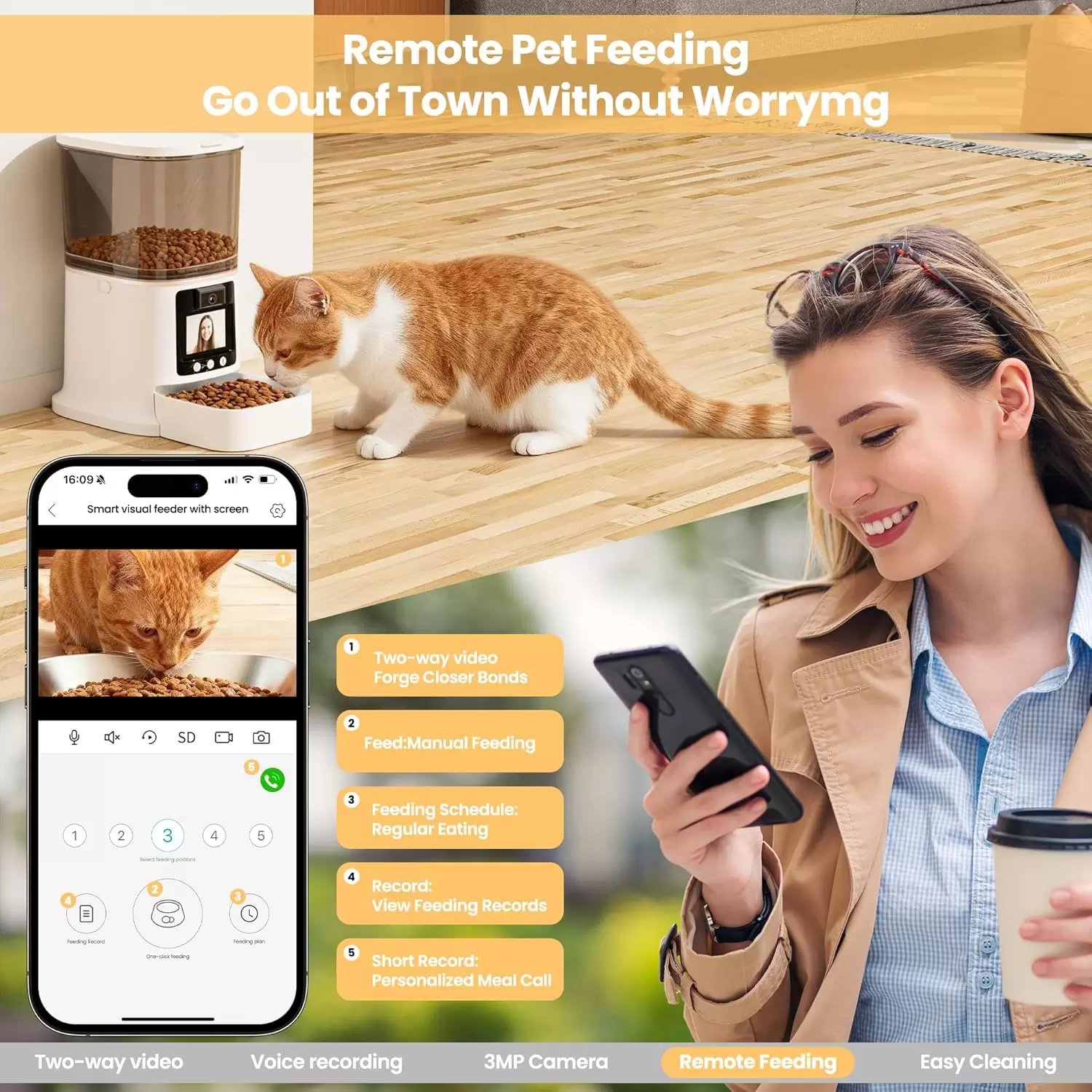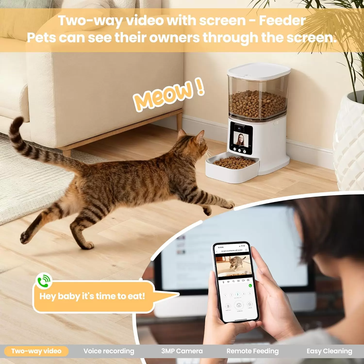 Comedero Automatico WiFi 5G con Pantalla Video 2 Vias e Interaccion en Tiempo Real 3 kg