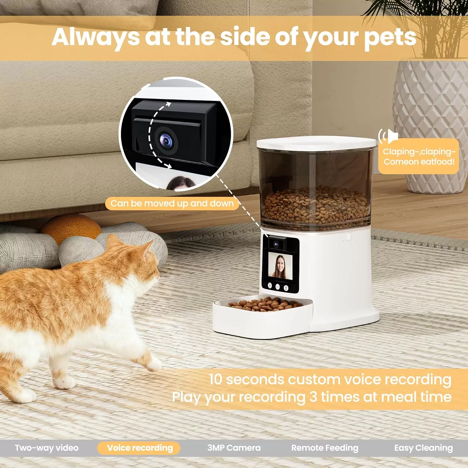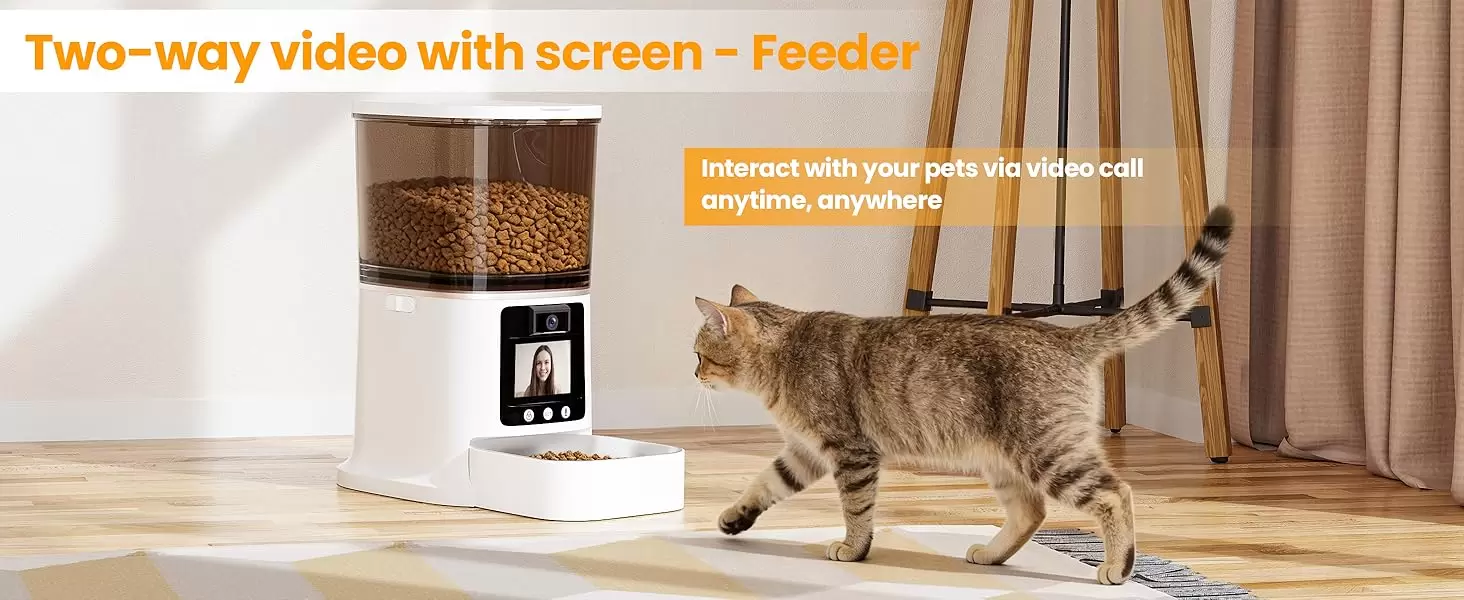 Interacción real: Vea a su mascota y deje que ella lo vea a usted Este no es un comedero con cámara común. Gracias a su pantalla integrada, usted puede realizar videollamadas en dos direcciones. Su mascota podrá ver su cara y escuchar su voz en tiempo real a través de la aplicación, lo que reduce drásticamente la ansiedad por separación. Es la tecnología ideal para quienes pasan muchas horas fuera de casa o trabajan en oficinas y quieren mantener el vínculo con su amigo peludo.