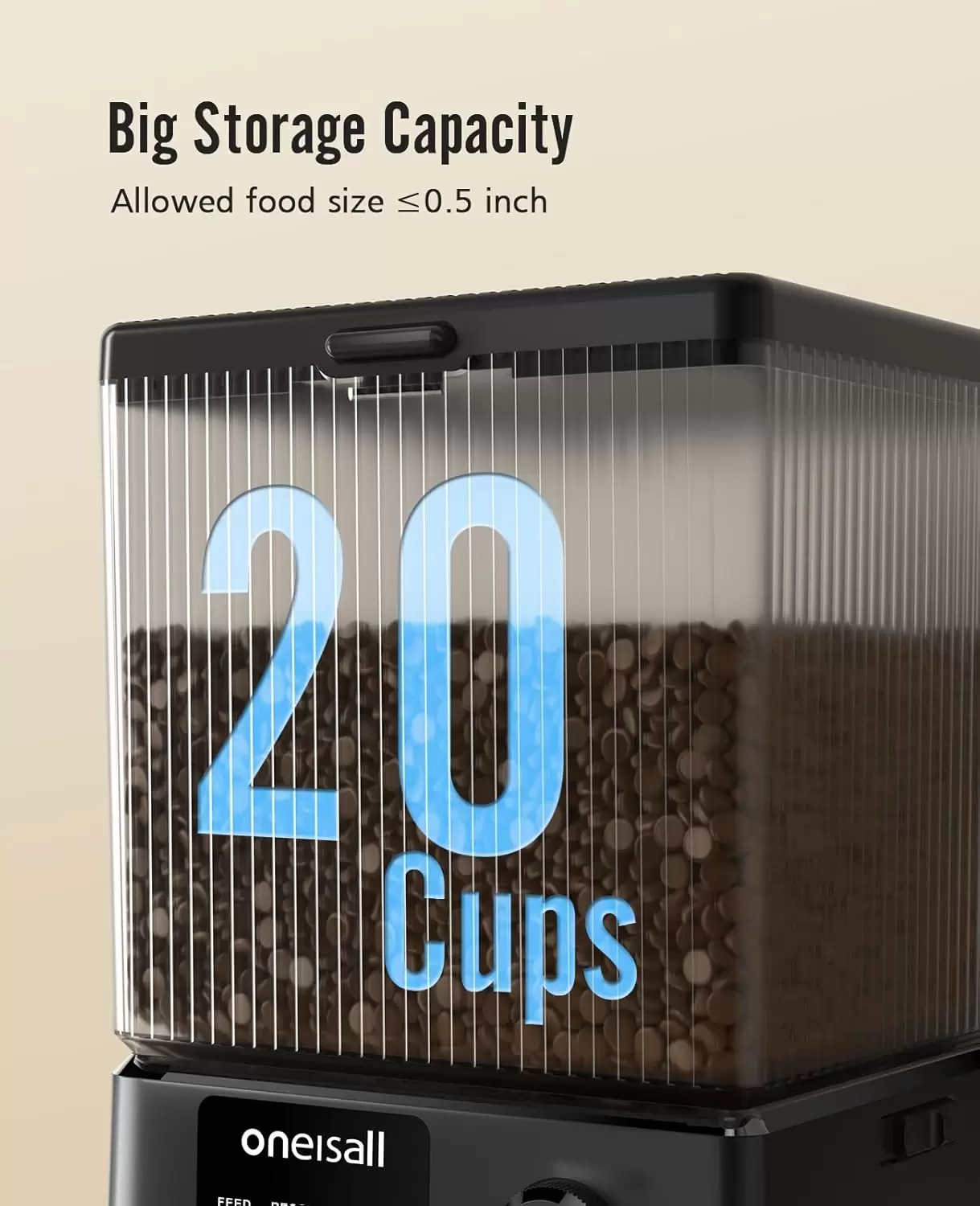 Comedero de 2.2 kg con WiFi 5G y doble plato. Sistema de reparto equitativo, grabacion de voz y control por aplicacion para alimentar a dos mascotas simultaneamente con total precision.