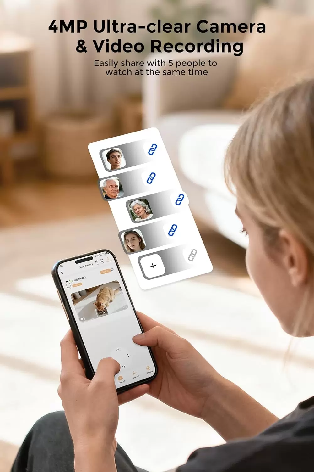 Vigilancia Ultra HD: Cámara de 4MP (resolución superior) para ver a tu mascota con máxima nitidez.