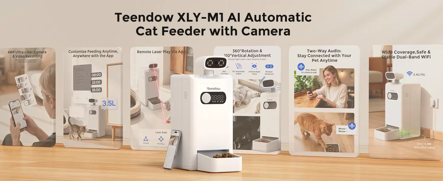 Control total y recuerdos para siempre Configura horarios de alimentación precisos desde tu smartphone y recibe notificaciones en tiempo real. El sistema es tan inteligente que captura fotos y videos de forma automática cuando detecta actividad, permitiéndote guardar y compartir esos ronroneos o juegos divertidos. Es la solución más completa para asegurar que tu mascota nunca esté sola ni pase hambre, permitiendo que toda la familia participe en su cuidado.