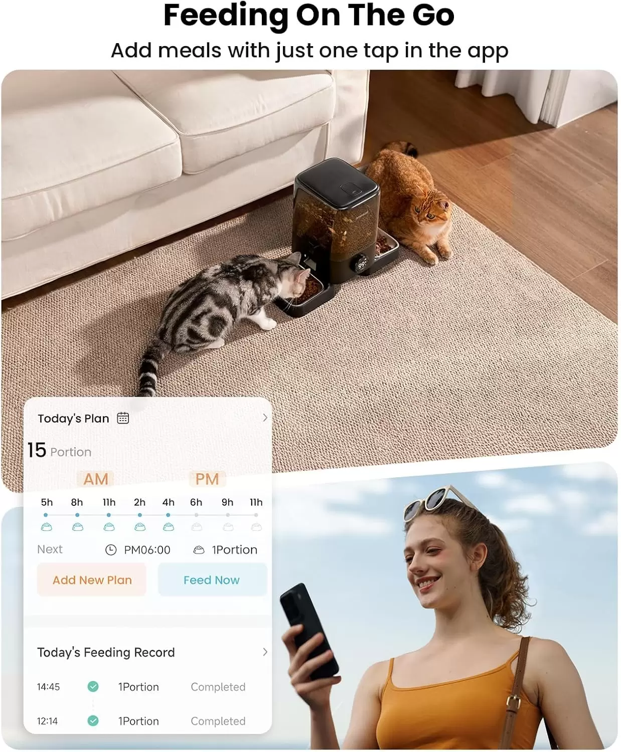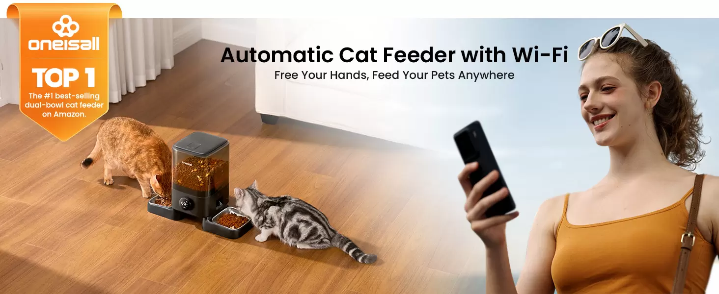 Comedero Automatico WiFi Inalambrico 2.3 kg con Doble Plato para 2 Gatos y Perros