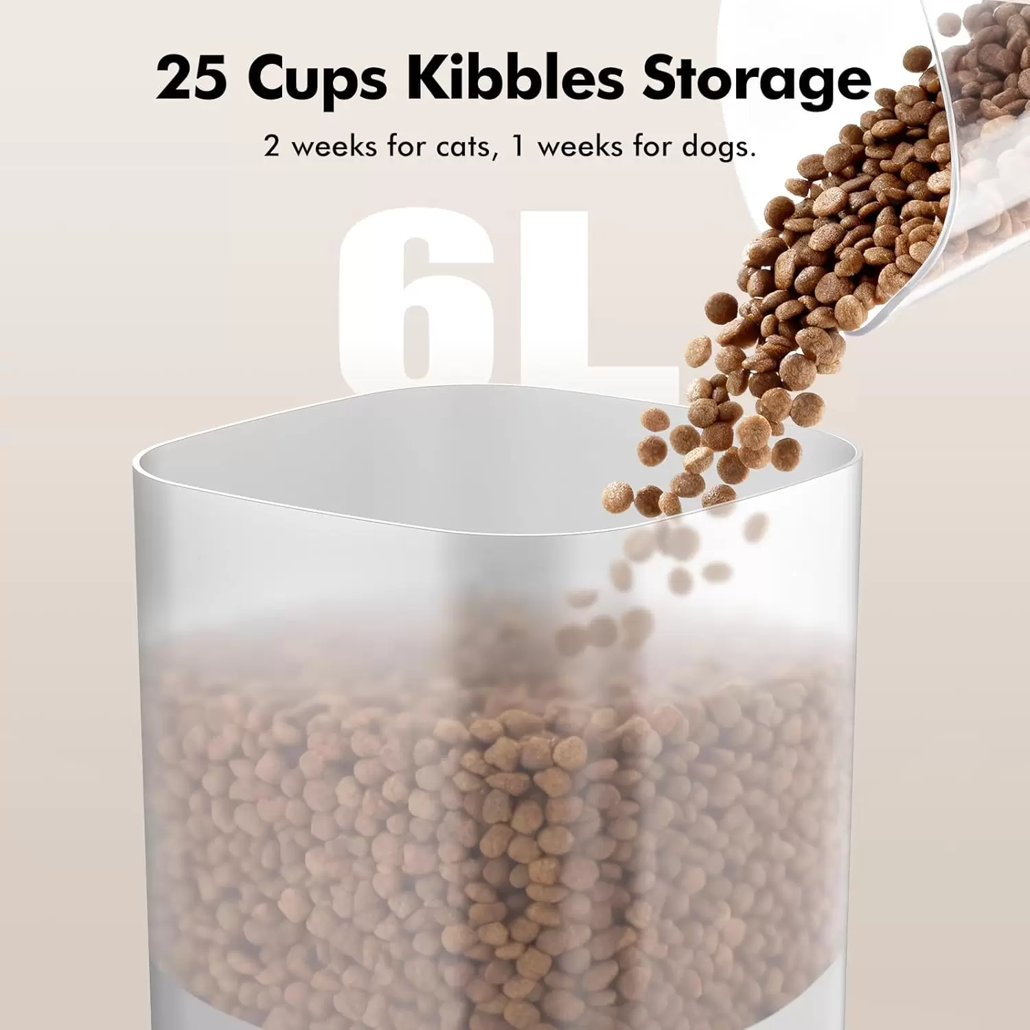 Capacidad de almacenamiento: 6 litros (aproximadamente 2.7 kg de alimento seco).