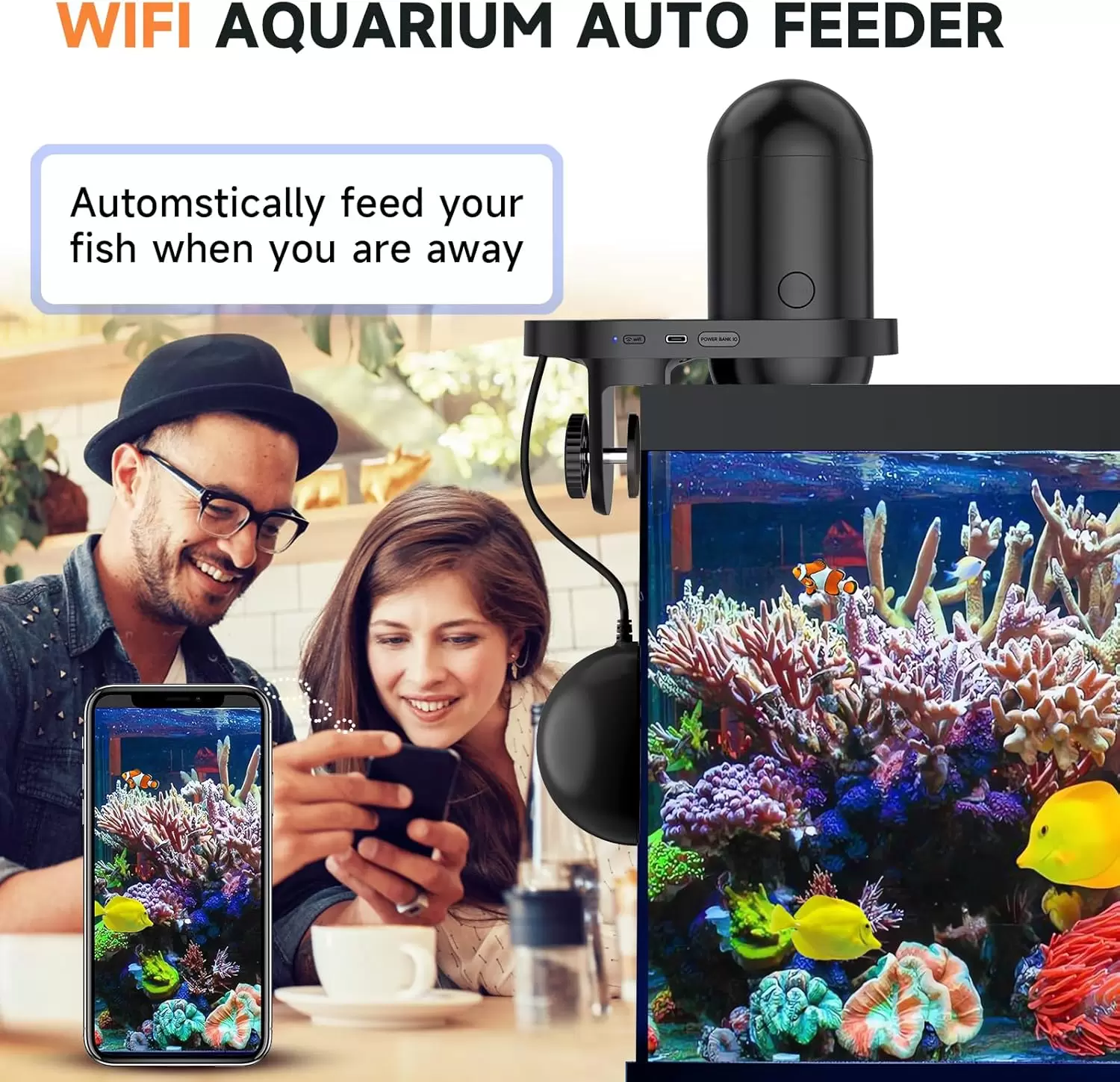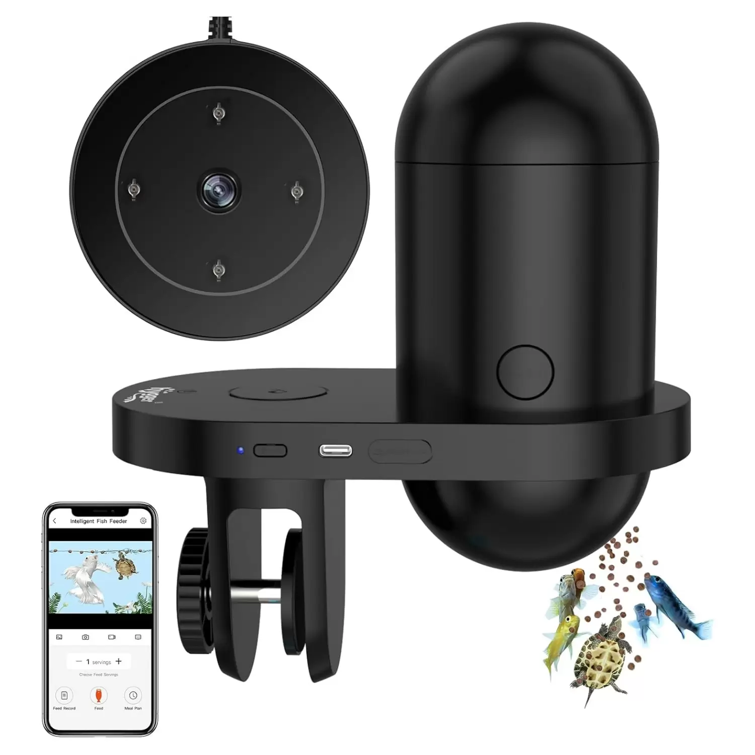Comedero WiFi con Cámara HD para control total. Programa alimentación personalizada y vigila a tus peces en vivo por App. Diseño antihumedad para viajes sin preocupaciones.