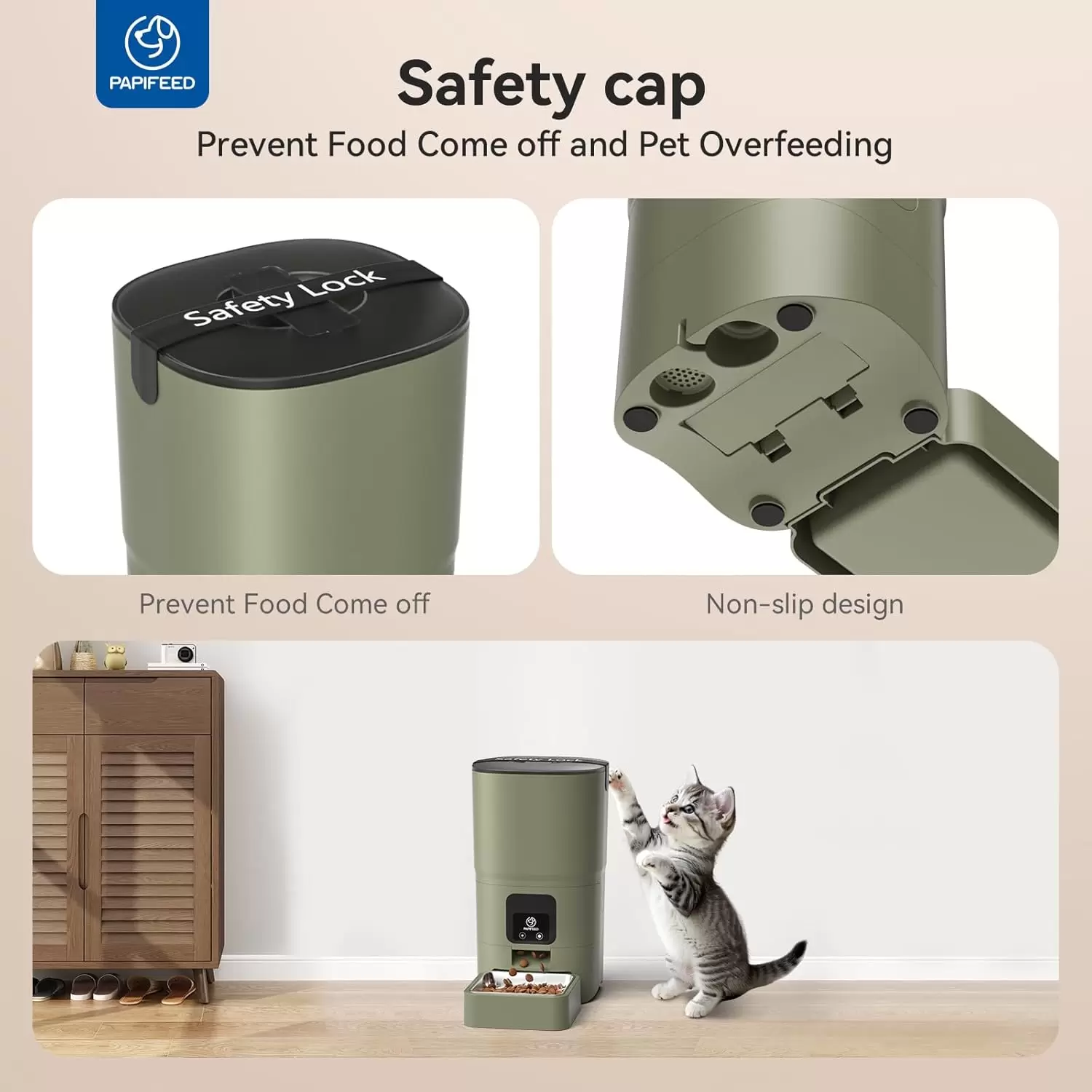Bloqueo seguro para evitar el robo de alimentos: el bloqueo mecánico integrado asegura la tapa de alimentos entre comidas programadas. Esto puede ayudar a disuadir a los gatos inteligentes o perros pequeños/medianos de abrir el comedero y comer en exceso, lo que permite un mejor control de porciones y peso.