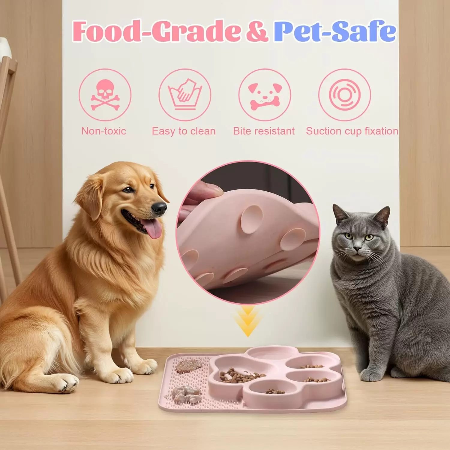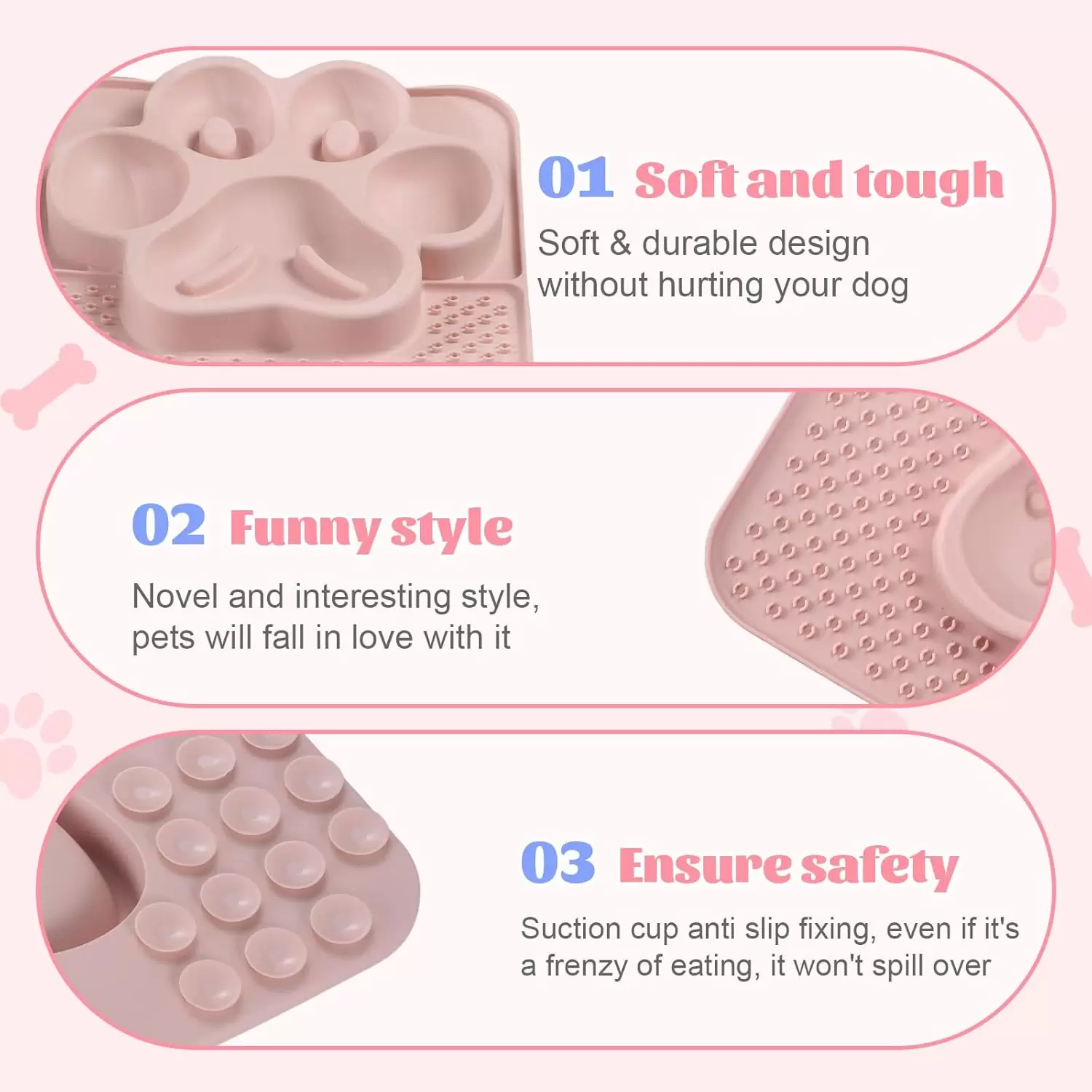 Base de succión antideslizante: cuenta con una fuerte ventosa para mantener los tazones de silicona para perros o gatos de alimentación lenta en su lugar, evitando derrames. Ideal para cuencos de cachorros para perros pequeños y mascotas enérgicas.