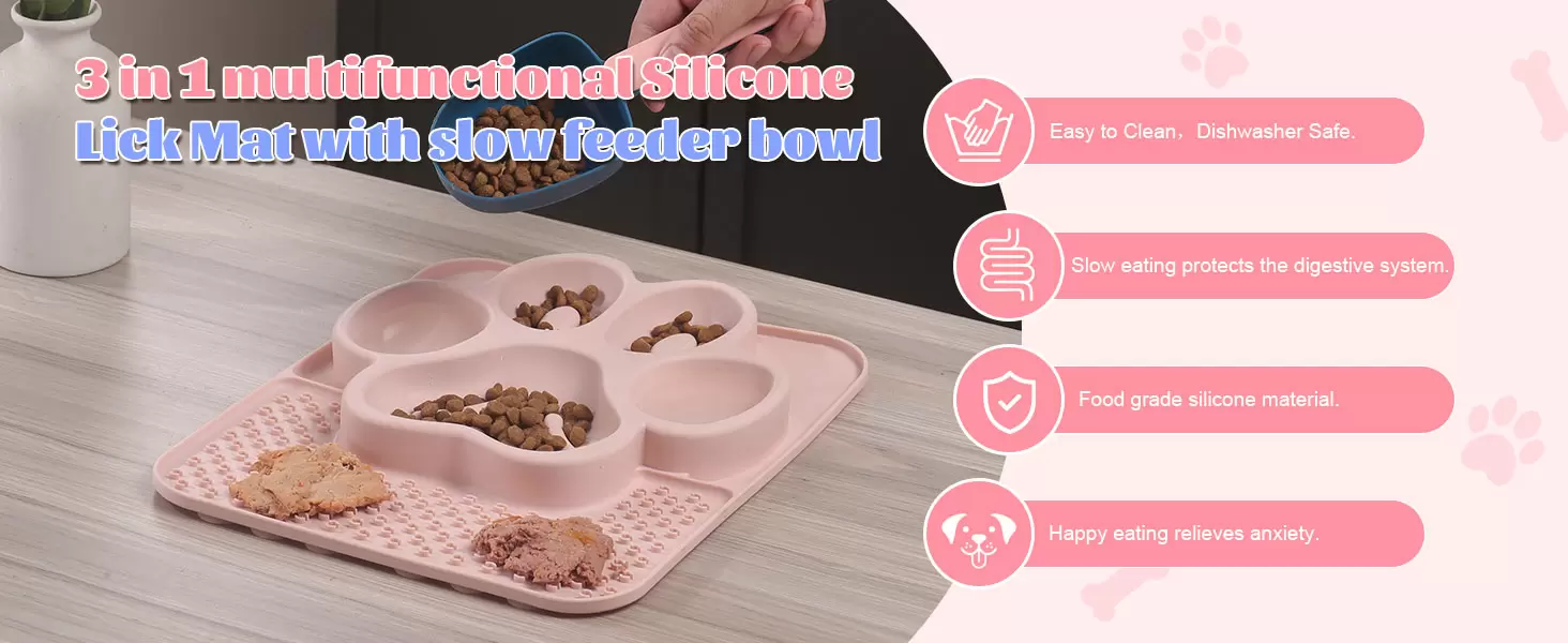 Un tazón de alimentación lenta de silicona para perros y gatos en Chile. Su diseño de rompecabezas con base antideslizante ayuda a prevenir la indigestión y el desorden a la hora de comer.