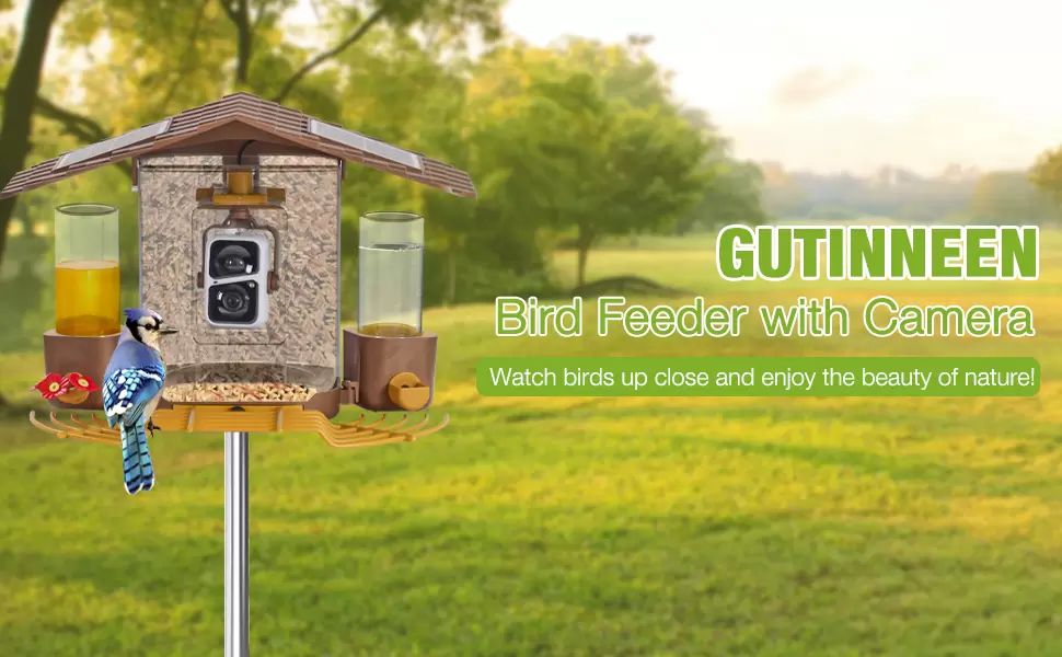 【Recibe notificación de llegada de aves】¿Todavía estás usando binoculares para observar pájaros? El comedero inalámbrico para pájaros GUTINNEEN con cámara captura y graba automáticamente video de todas las aves entrantes, y puedes recibir notificaciones de visita de aves en tiempo real a través de la aplicación móvil. Este innovador alimentador inteligente con cámara te acerca a las aves y más cerca de la naturaleza.