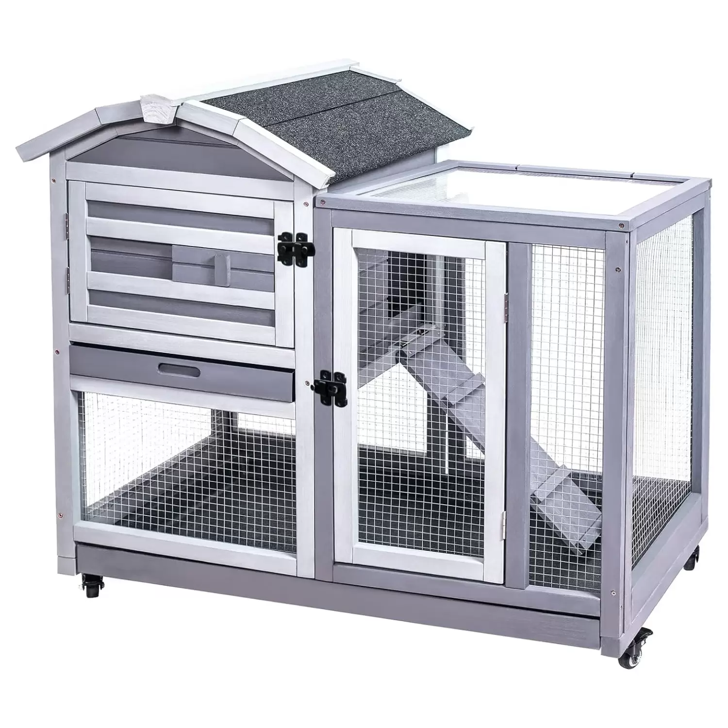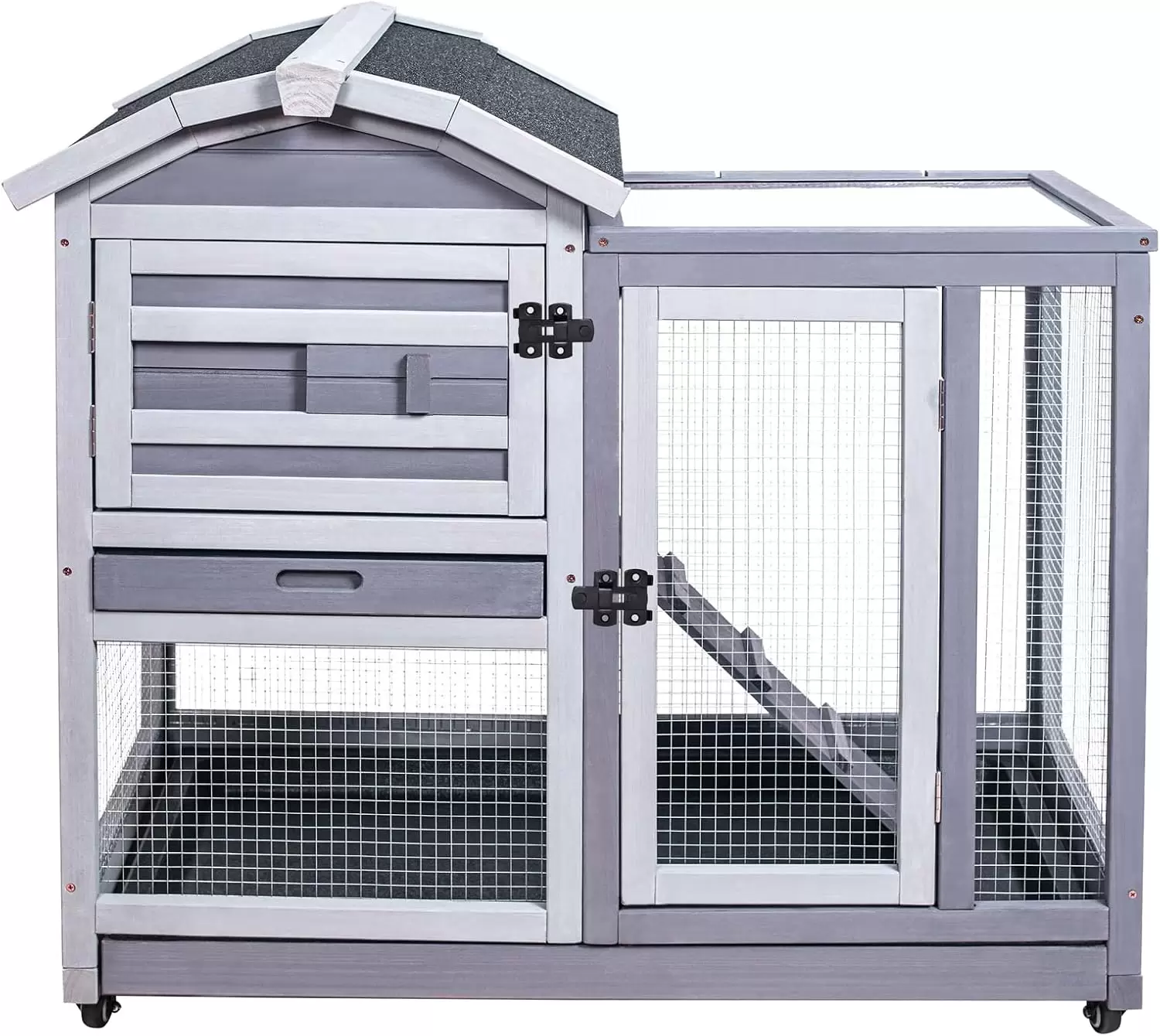 Esta conejera de madera de cedro de 2 niveles es el hogar definitivo para tus mascotas, ofreciendo seguridad, confort y una durabilidad superior para uso en interiores o exteriores. Es ideal para conejos, cobayas (cuyes), polluelos, erizos, hurones y más.