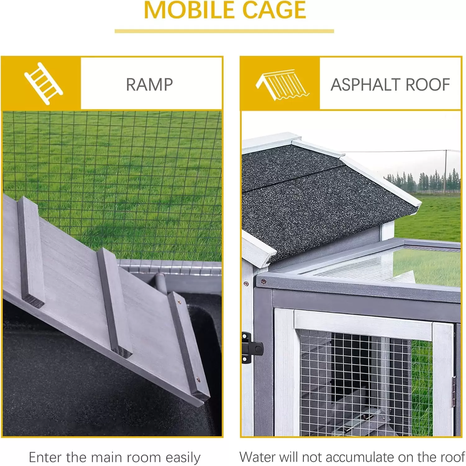 Protección Total: Su techo de asfalto protege eficazmente a tus mascotas del sol, el viento, la lluvia y la nieve, garantizando un refugio seco y cómodo todo el año.