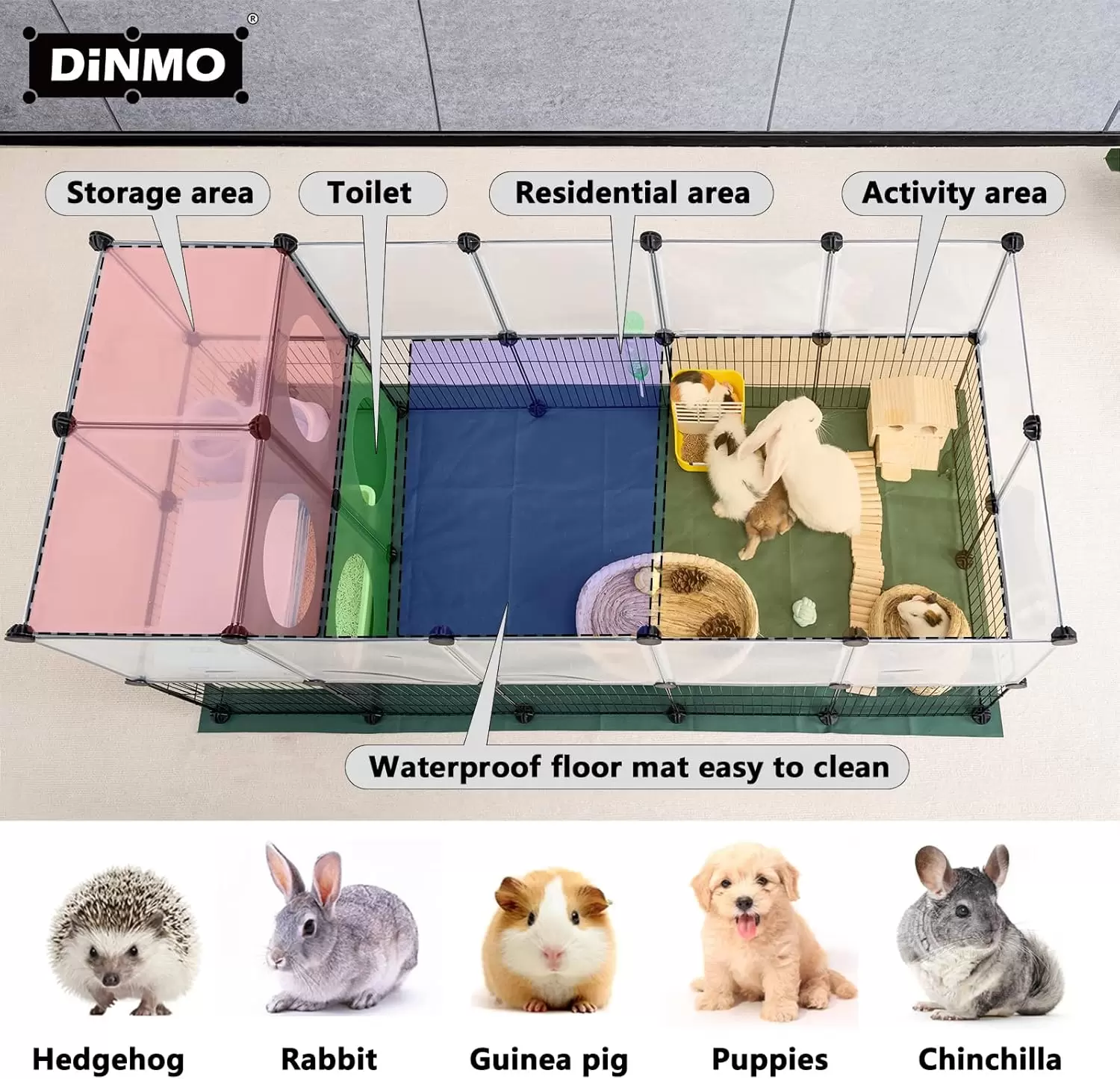 Alfombrillas de tela Oxford, almohadillas antideslizantes: esta cerca de conejo también proporciona tapetes de tela Oxford verde, que pueden evitar que el piso se raye, corroa por la orina, antideslizante, fácil de limpiar y dar a las mascotas la sensación de estar en la naturaleza; las juntas antideslizantes se adhieren a En la parte inferior de la hebilla, la fricción con el suelo o la alfombra del piso se puede aumentar para proteger aún más el piso o el tapete y evitar deslizamientos.