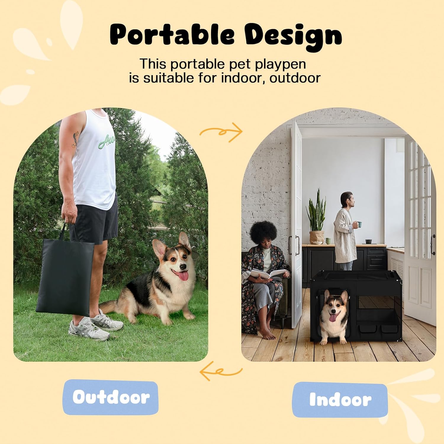 Resistente al agua y fácil de limpiar: la tela interior del corralito grande tiene un revestimiento impermeable, el corral para perros al aire libre es fácil de limpiar limpiando un paño o lavándolo con agua directamente.