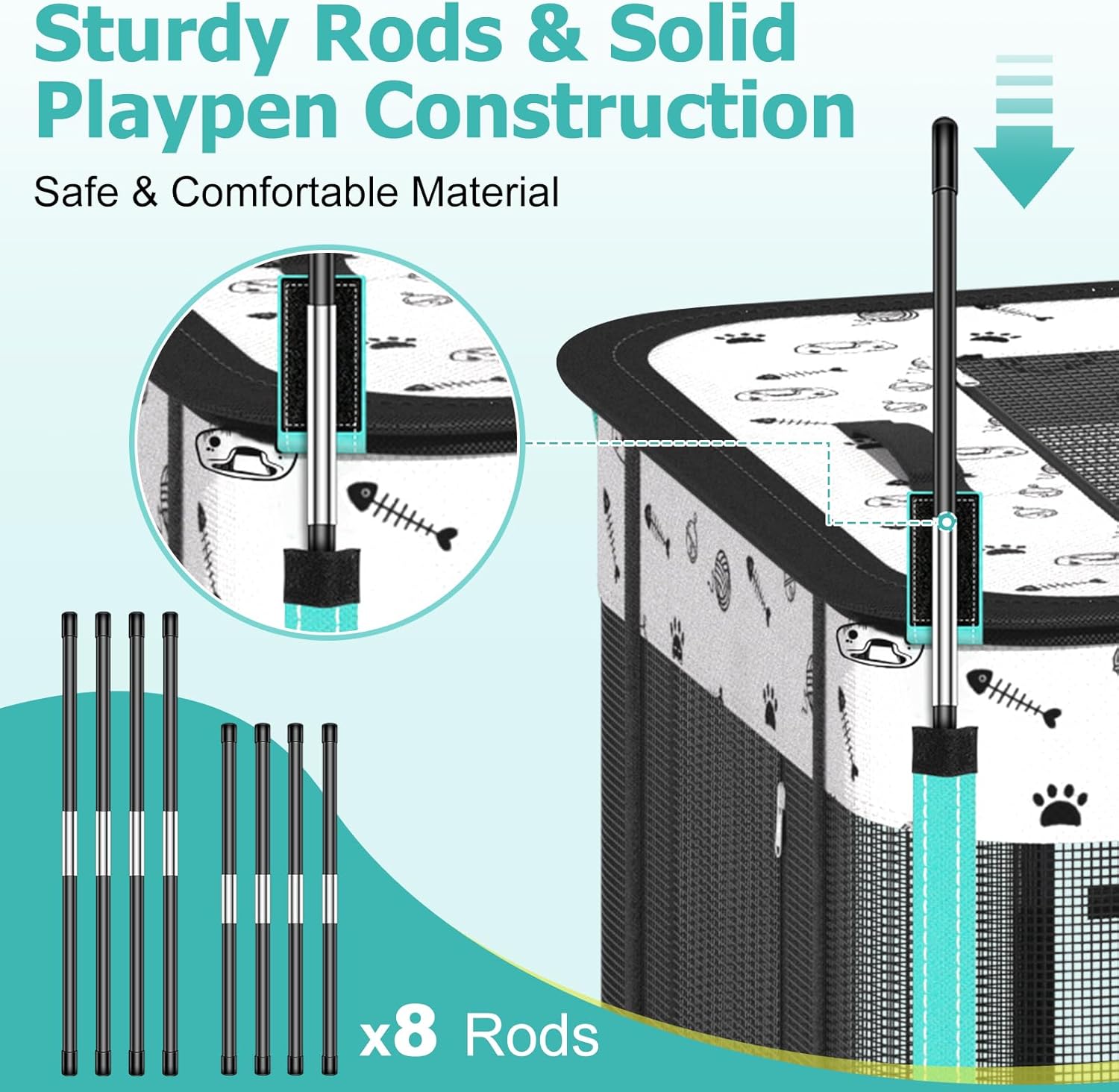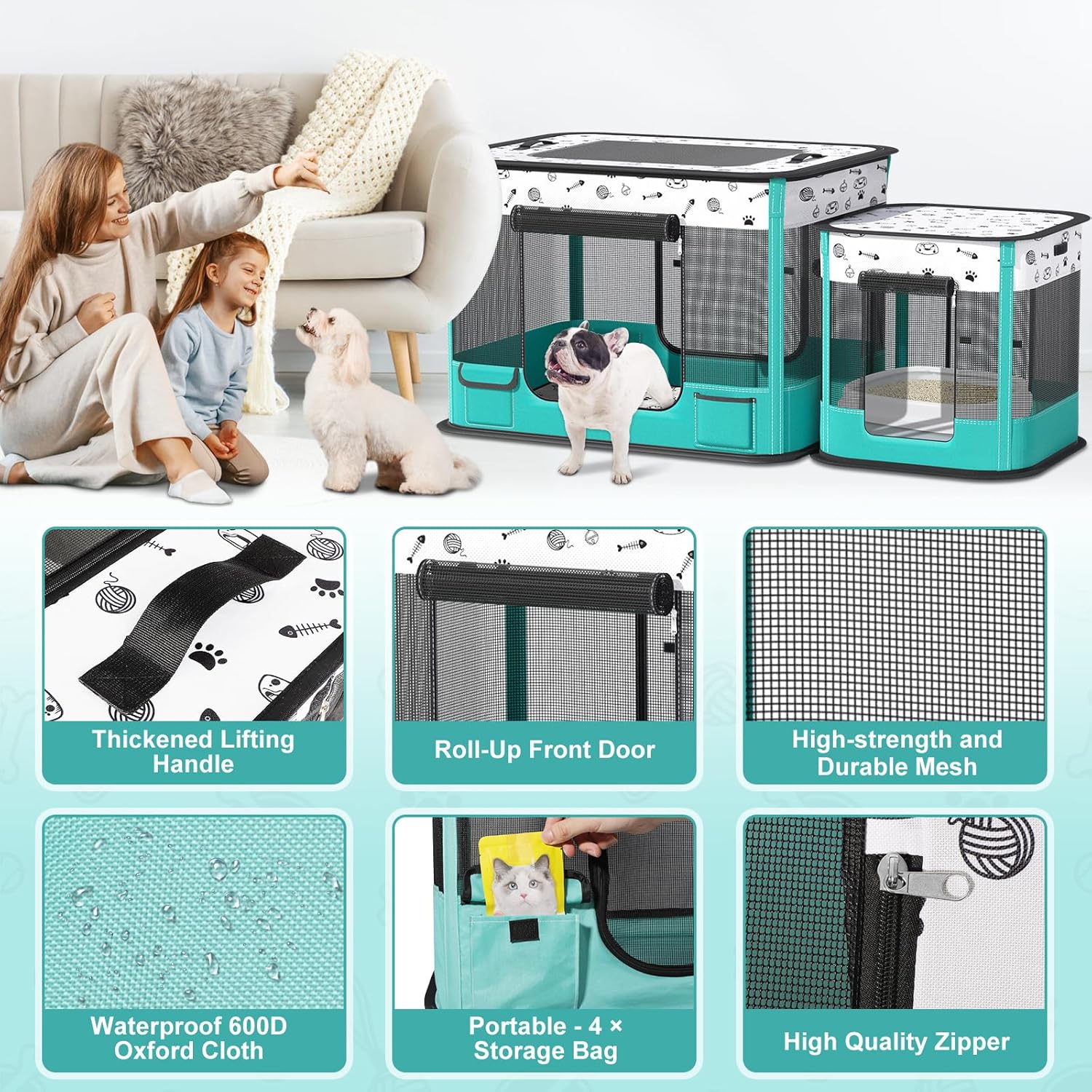 Material duradero y resistente: el corralito portátil para gatos se compone de malla gruesa de alta calidad y tela Oxford 600D lavable resistente a los arañazos que hace que la limpieza sea más fácil, duradera e impermeable