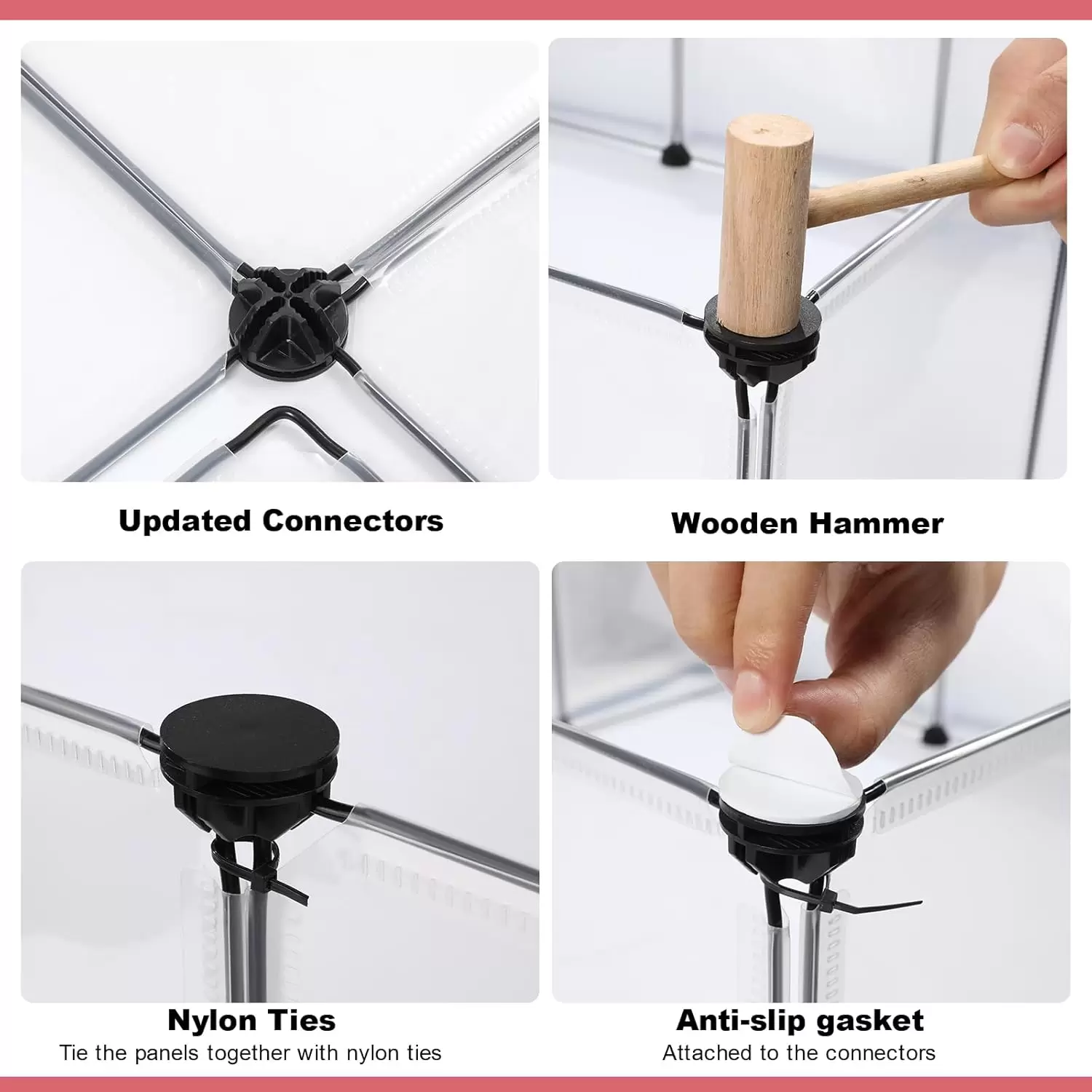 Diseño resistente: las bridas de nailon pueden estabilizar muy bien el corralito para mascotas pequeñas, y los tapetes antideslizantes evitan que la cerca se deslice en el suelo, además de protegerlo. También es difícil para las mascotas mover la cerca cuando juegan.