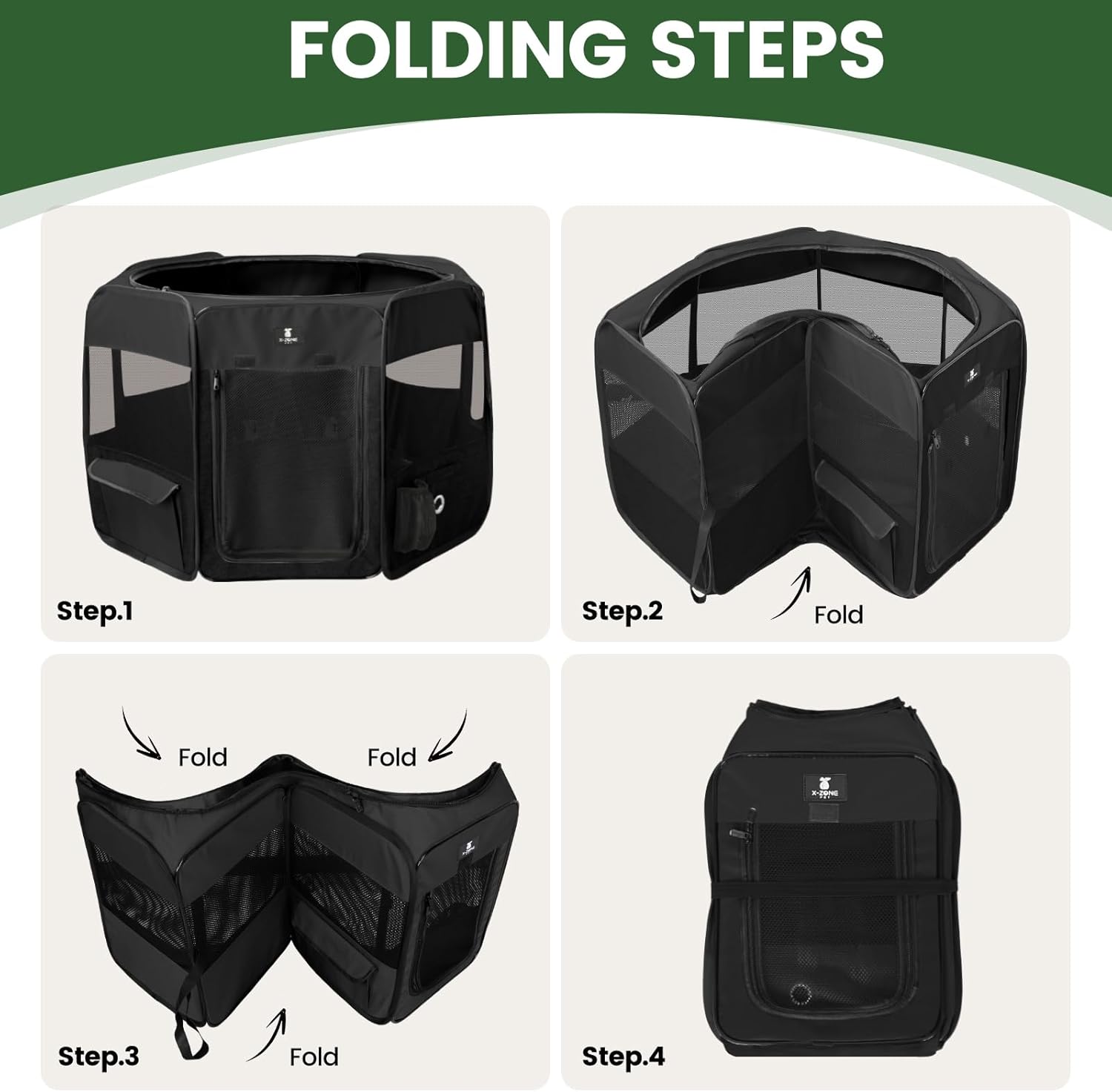 La jaula para mascotas está hecha de tela Oxford 600D duradera y 8 paneles de malla, hace que sea buena ventilación y sea fácil comprobar el estado de la mascota