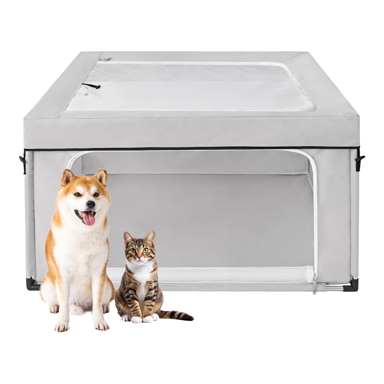 Seguridad y comodidad: el corralito para perros tiene cremalleras de bloqueo que proporcionan un área de descanso segura para tus mascotas, incluidos cachorros, gatitos y otros amigos peludos. También se puede utilizar como un área interactiva para que usted y su mascota disfruten jugando.