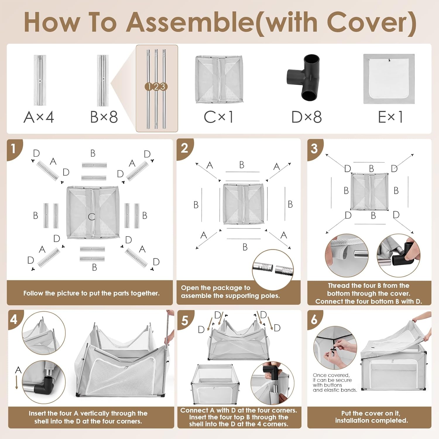 En interiores y exteriores: este corral para cachorros es ideal tanto para uso en interiores como en exteriores. Sin embargo, no se recomienda su uso en exteriores durante el clima lluvioso, ya que la exposición a la lluvia puede causar que los tubos de acero inoxidable se oxiden, afectando la vida útil de los mismos.