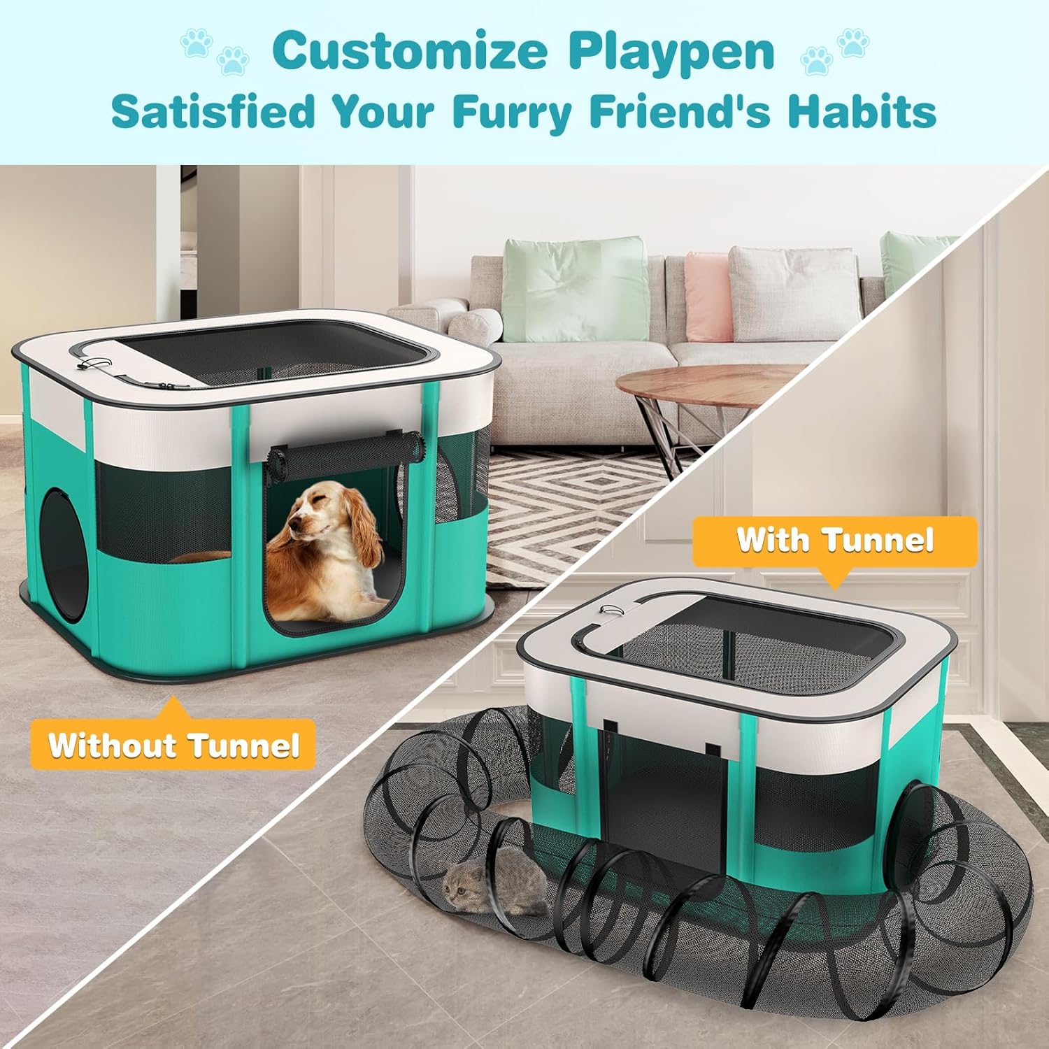 Satisface los hábitos de tu amigo peludo: este innovador túnel para gatos combina un corralito para gatos al aire libre y un túnel para gatos, ofreciendo versatilidad para uso independiente o cremallera perfecta para crear un juego completo de casa de juegos para gatos. Se puede utilizar tanto para cachorros como para gatitos, y el túnel se puede instalar o quitar dependiendo de los hábitos de tu mascota.