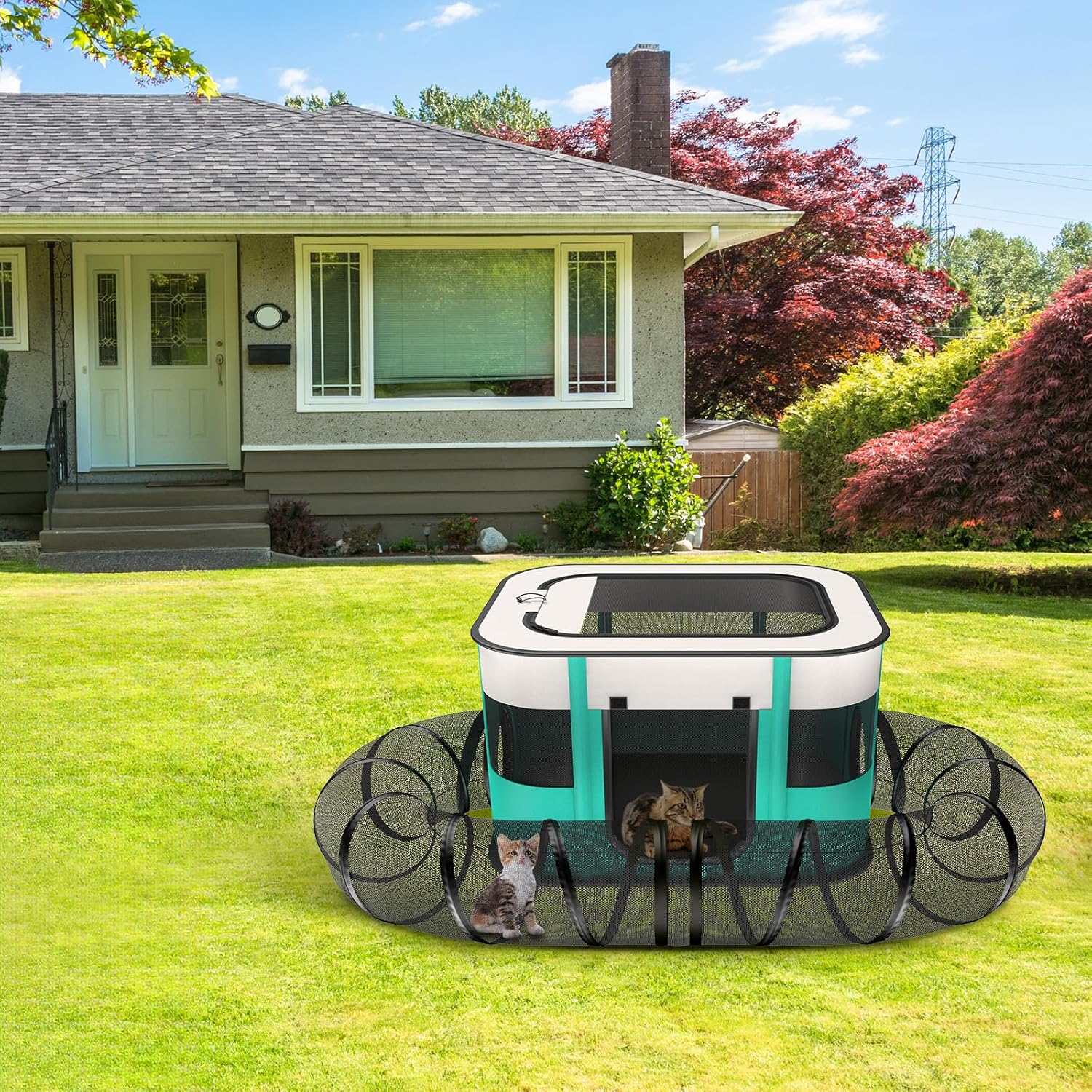 PORTÁTIL PARA GATOS: Diseño emergente, túnel desmontable, viene con una bolsa de transporte, fácil de montar, fácil de desmontar, fácil de transportar, ligero pero de estudio. También se pliega cuando no está en uso para un fácil transporte y almacenamiento. Puedes llevar fácilmente el recinto para gatos en un picnic o viaje de campamento. Su diseño portátil te permite llevarlo a cualquier lugar, asegurando que tu mascota se entretiene tanto en casa como en movimiento.