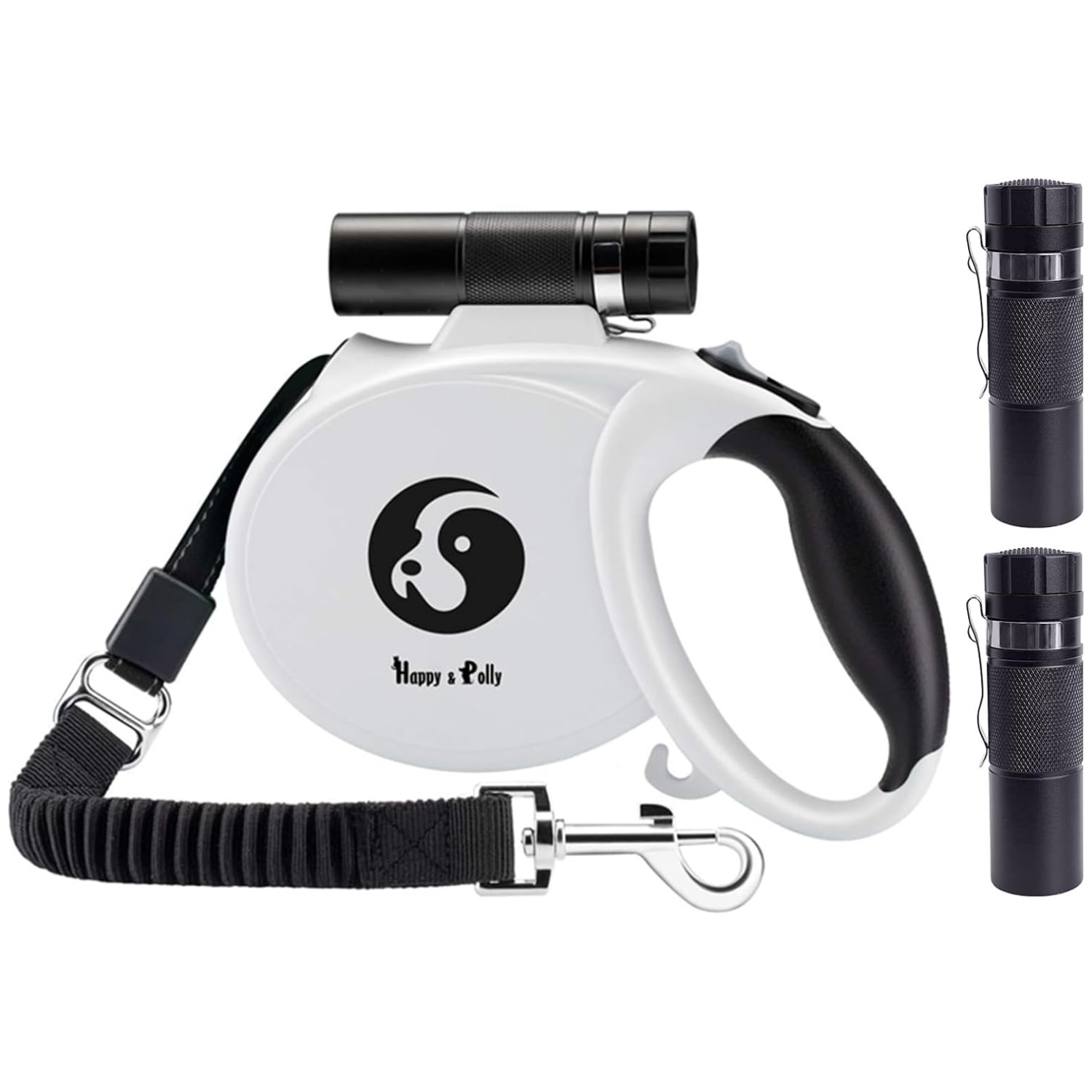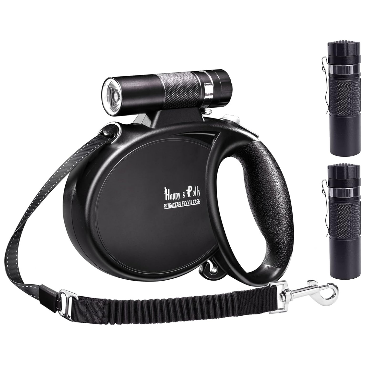 Linterna superbrillante: elegante linterna de aleación de aluminio desmontable, la correa retráctil Happy & Polly para perro es muy cómoda de usar por la noche (chip LED fabricado en Estados Unidos). Cuando se desmonta, esta linterna puede ser un mini artículo de mano portátil.