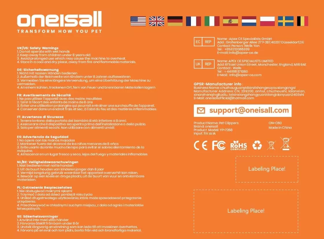 Lo que obtienes: cortapelos para gatos oneisall 7268, 4 guardias (0.118 in/0.236 in/0.354 in/ 0.472 in), cepillo de limpieza, peine, tijera, cargador USB. Incluye todo lo que necesitas para recortar el pelo de tu mascota