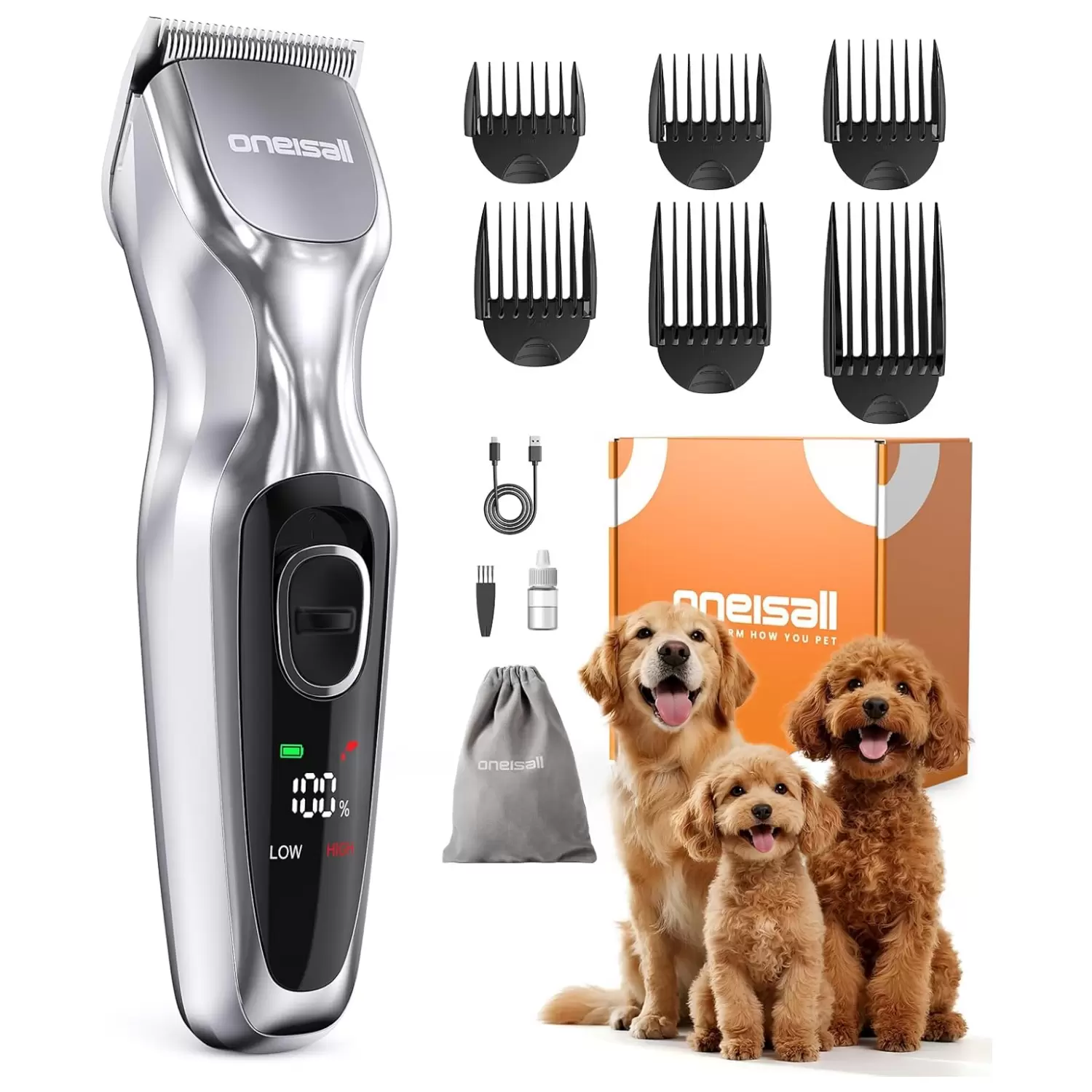 Cortadora profesional para perros. Su diseño silencioso e inalámbrico, junto con sus peines ajustables, hacen que el corte del pelaje sea fácil, rápido y sin estrés para tu mascota.