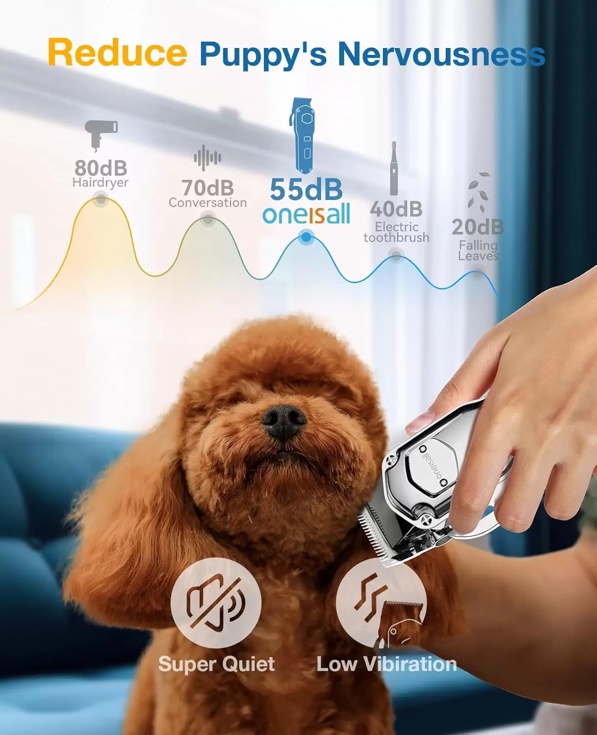 El ruido de los cortapelos para perros es inferior a 55 dB cuando corres. El bajo ruido no hará que tu perro se asuste y podrás recortar su pelaje con facilidad y mucho más rápido