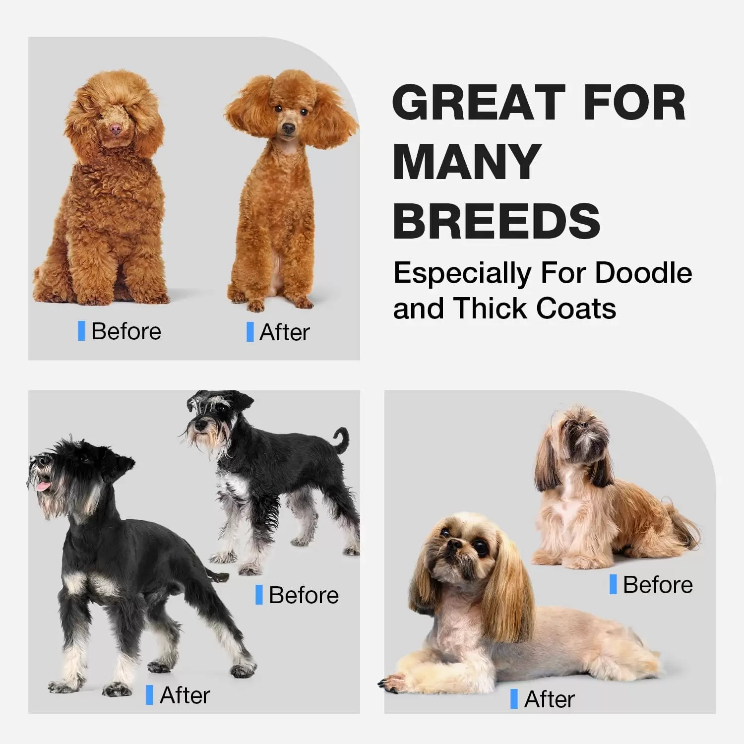 Motor silencioso y de bajo nivel de ruido: los cortapelos para perros para aseo están hechos de motor silencioso y de alta velocidad, el ruido cuando se trabaja es inferior a 55 db. Hace que tus mascotas ya no tengan miedo de cortar el pelo. Nuestro motor funciona a 6800 RPM, optimizado para capas gruesas, minimizando los tirones del cabello, reduciendo el tiempo de afeitado en un 45%