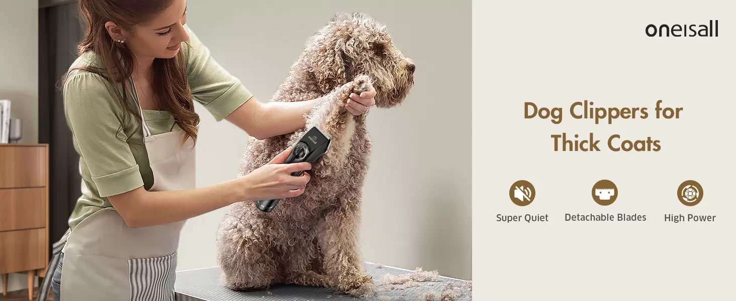 Cortapelos para perros de alta resistencia. Silencioso y potente, es ideal para un aseo profesional de pelaje grueso, rizado o denso en tu hogar.