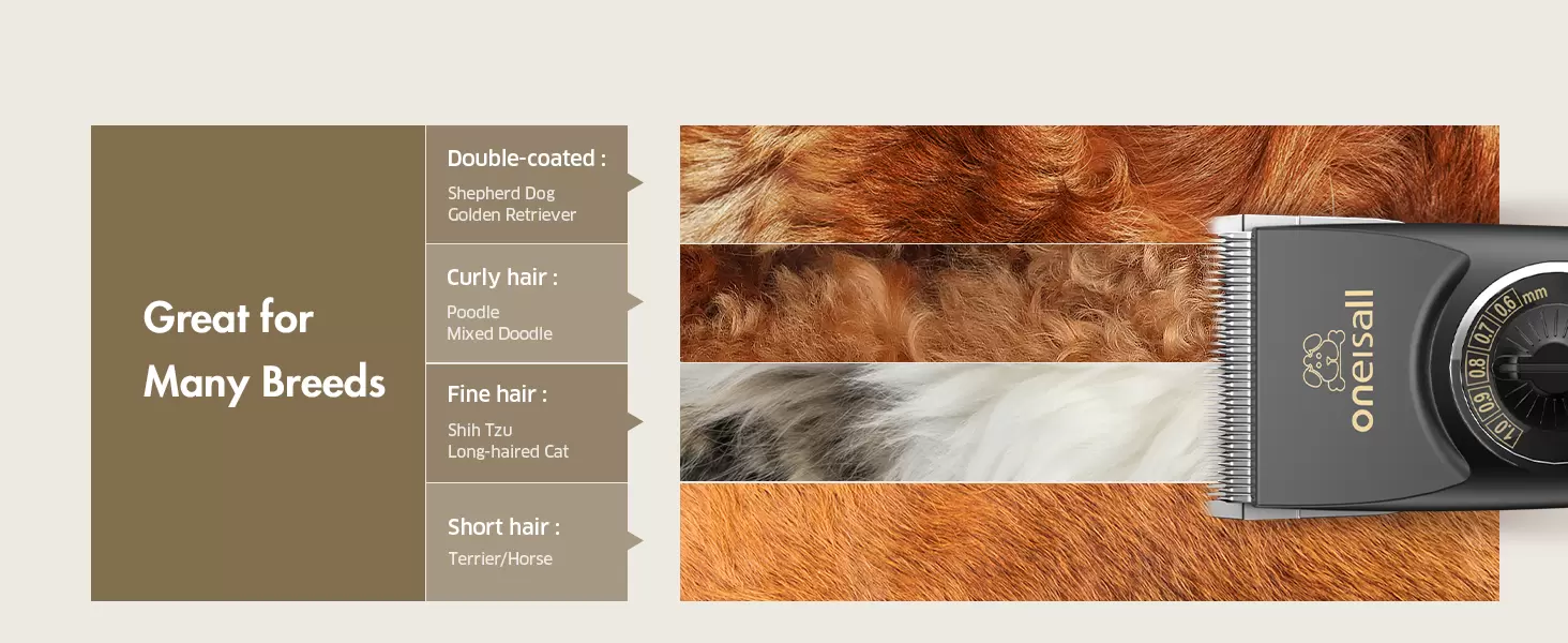 Longitudes personalizadas para todas las capas: 4 protectores de longitud más altura de hoja ajustable que te permiten marcar en longitudes de corte perfectas para cada mascota, desde chihuahuas de pelo corto hasta garabatos esponjosos. Las alfombrillas de retoque y eliminación son fáciles para ti