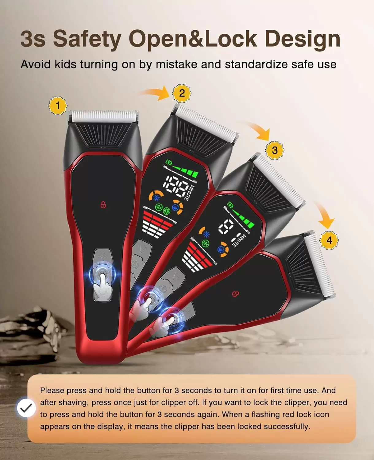Rotación de 2 etapas: primera etapa con 6000 rpm para recortar el cabello fino, segunda etapa con 6500 rpm para recortar el cabello grueso